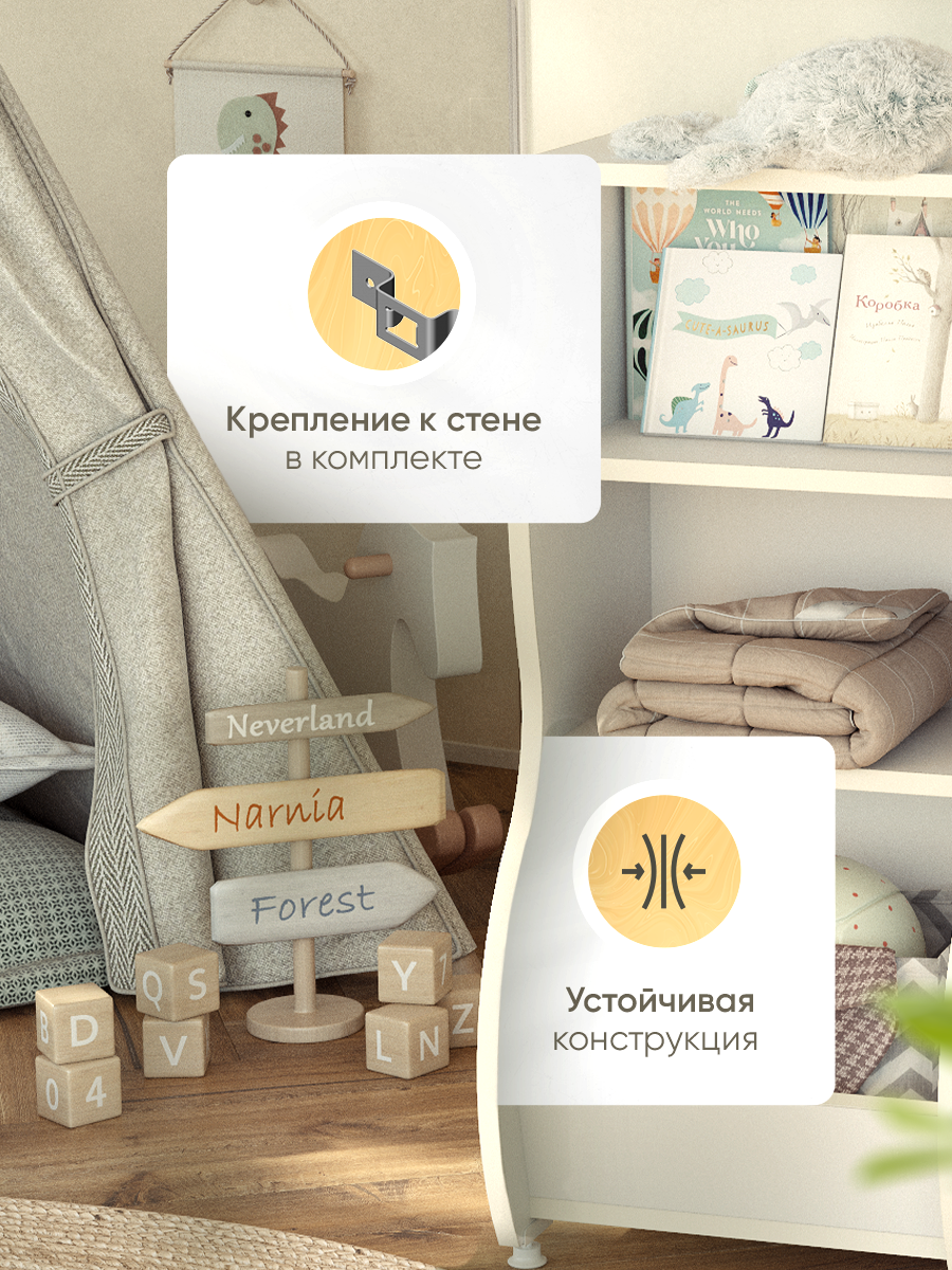 Стеллаж детский для игрушек и книг CUBBY,белый интересное: