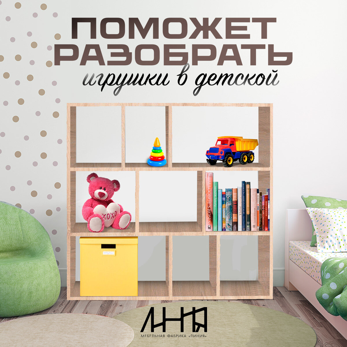 Стеллаж для книг и игрушек №4