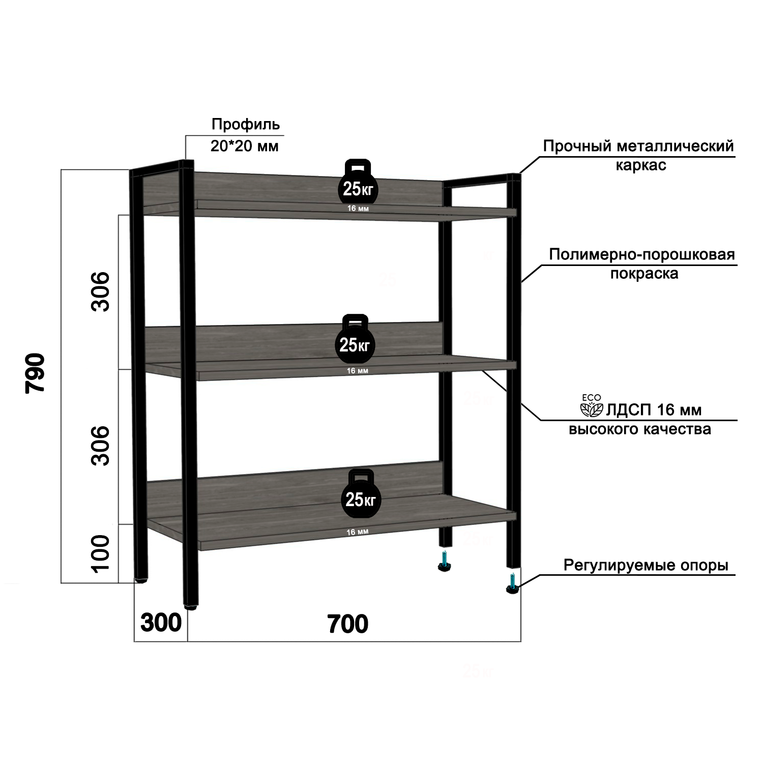 | Максимальная нагрузка на полку | 25 кг |