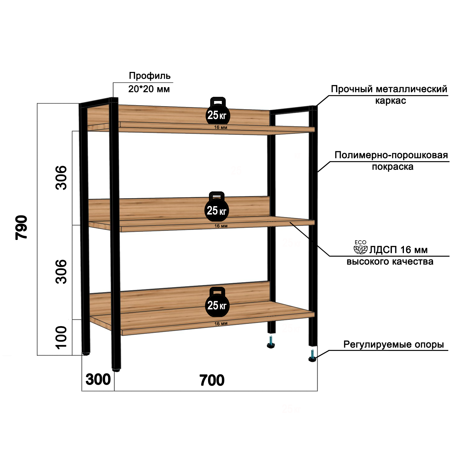 | Максимальная нагрузка на полку | 25 кг |