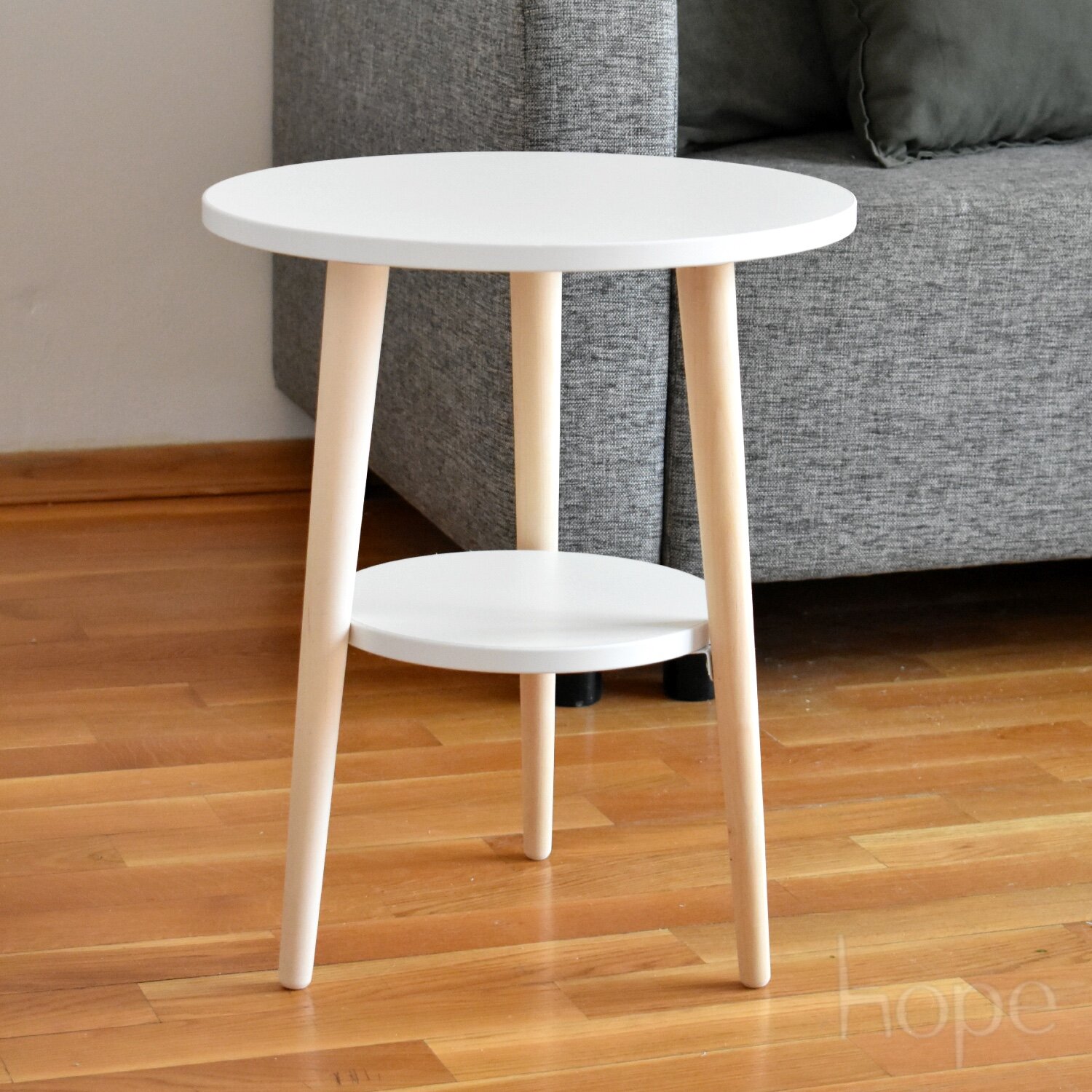 Журнальный столик с полкой белый круглый 40 см/ Прикроватный стол на ножках интересное: