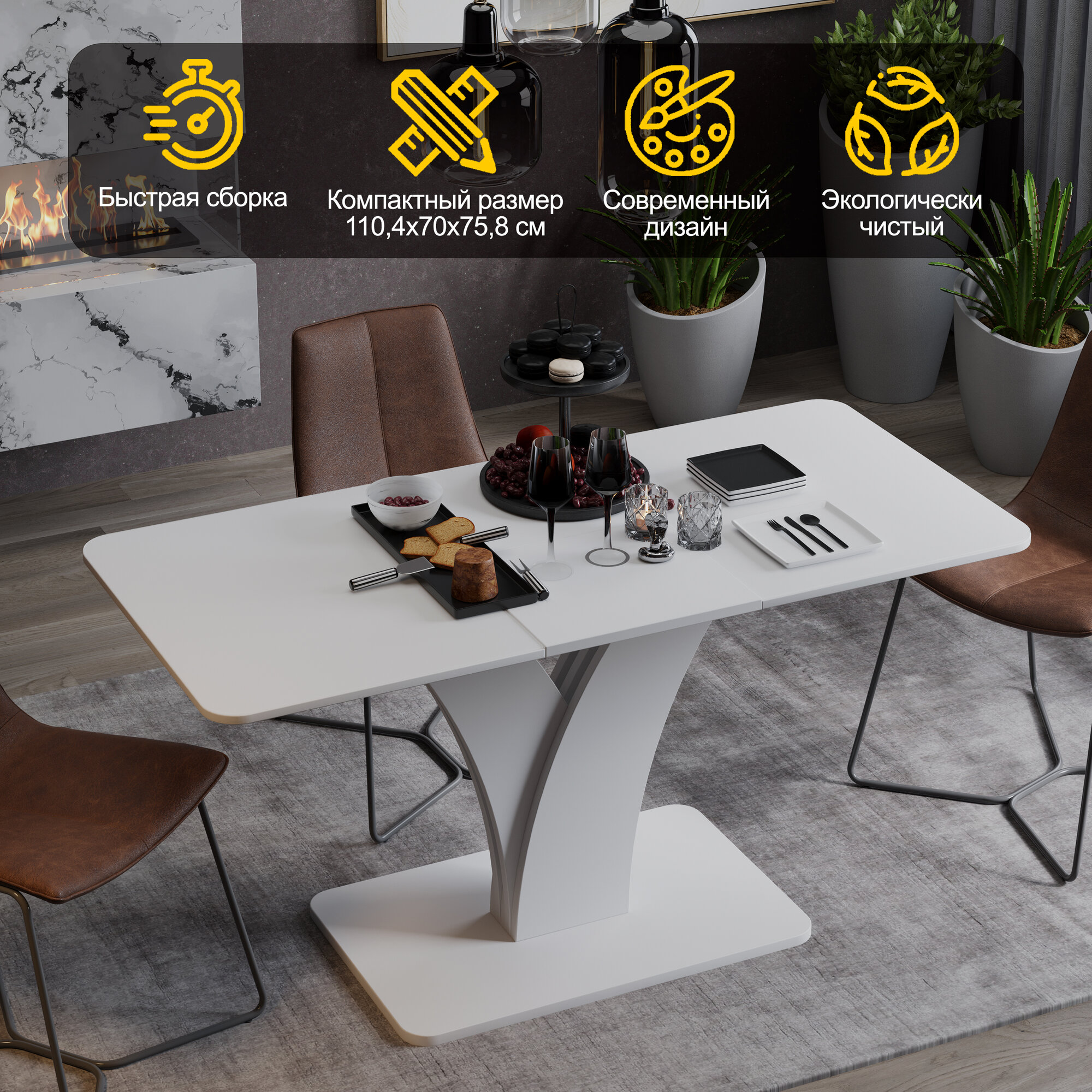 Стол обеденный раздвижной, кухонный стол со стеклом белый (ВхДхГ) 75х110х70 см, Люксембург интересное: