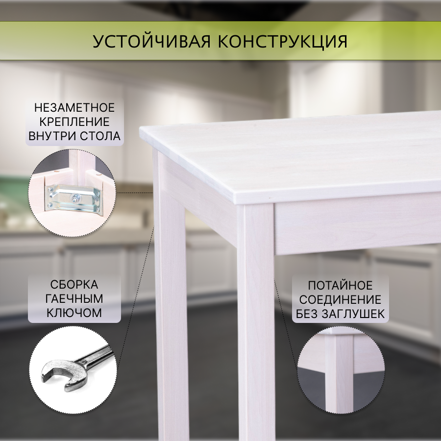 Стол обеденный Дженат 70х120см. из массива березы, цвет беленый дуб интересное: