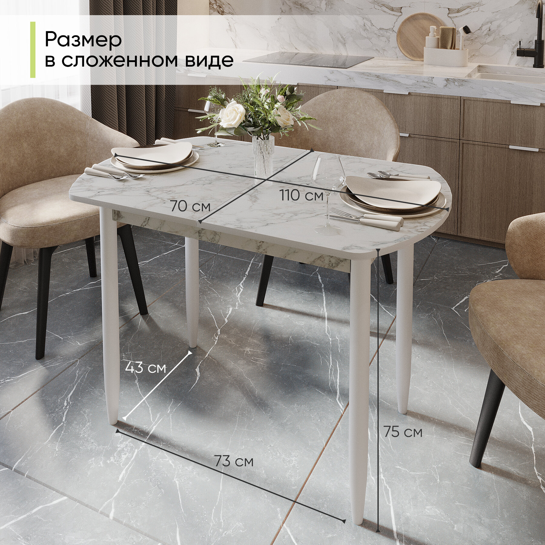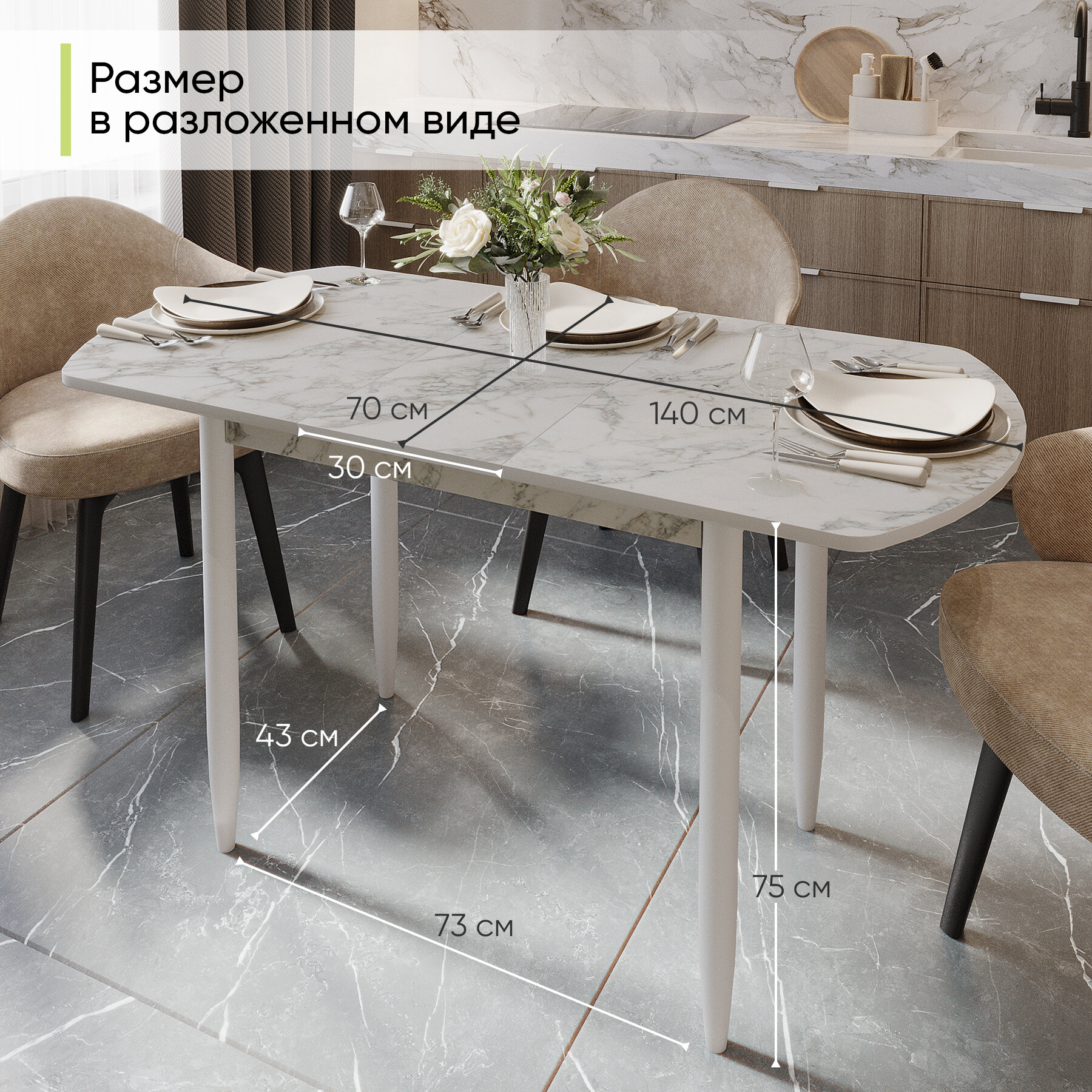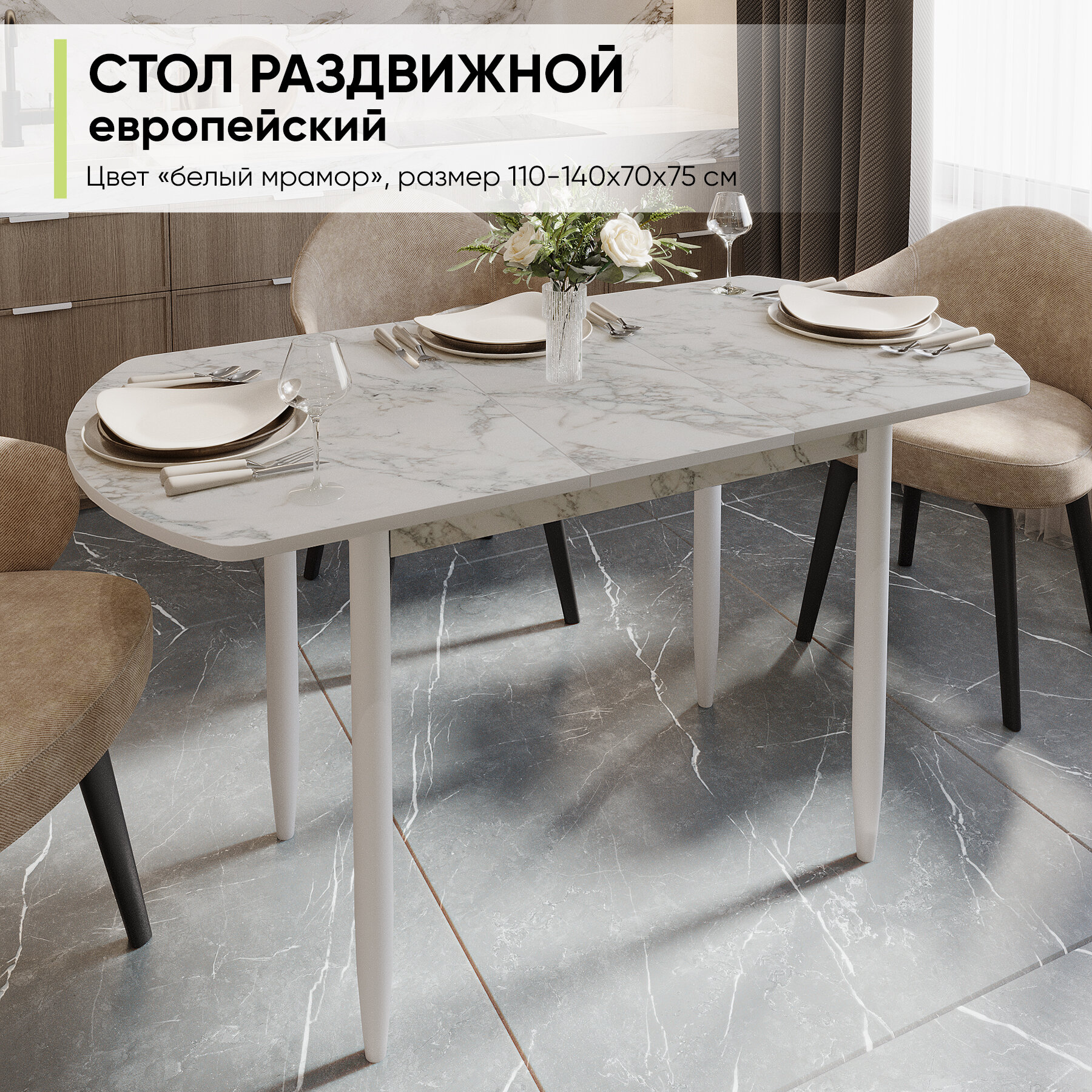 Стол обеденный раздвижной полу-овальный для кухни и гостиной, 110-140х70х74