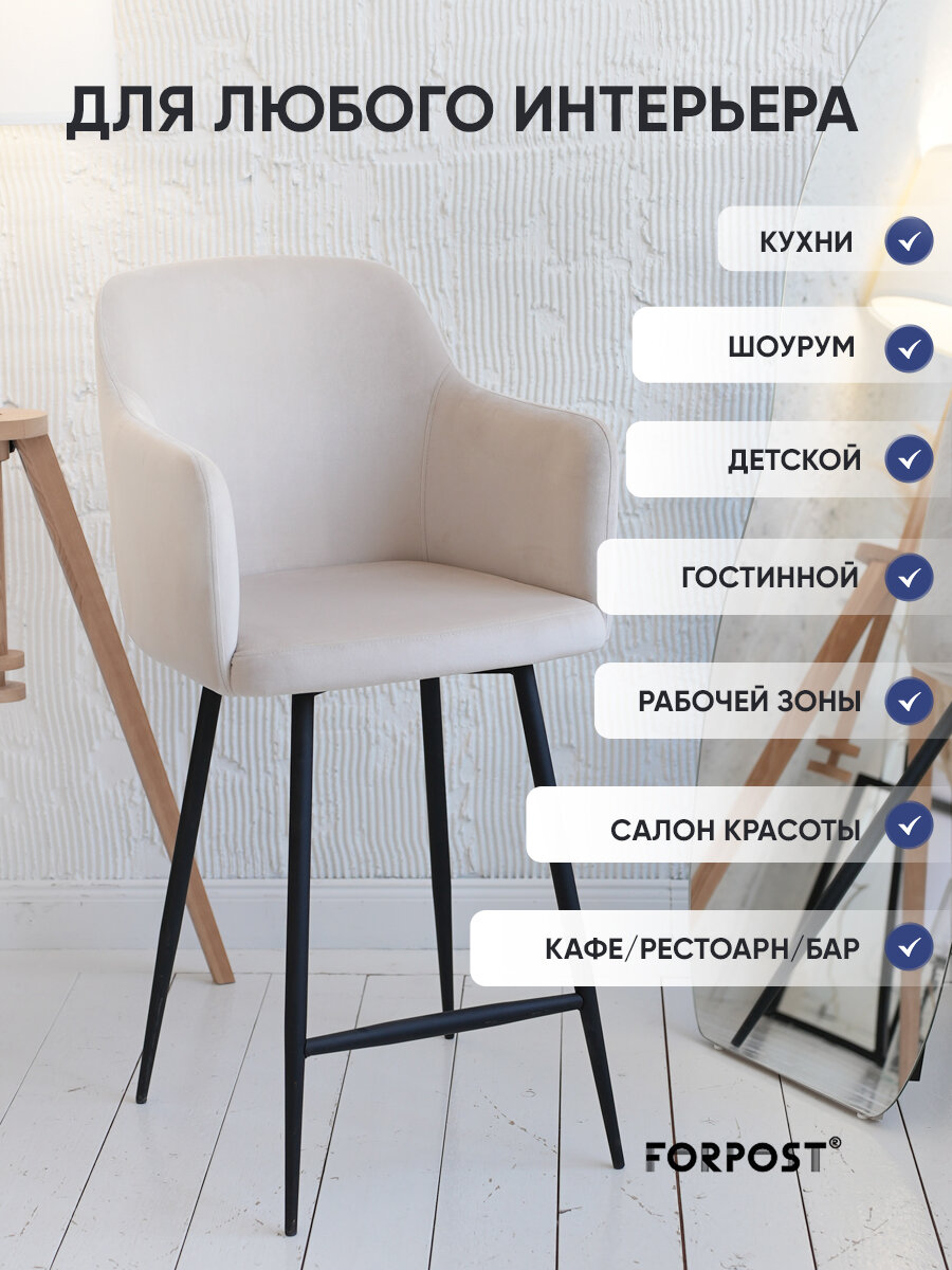 Барный стул со спинкой для кухни Ститч крем интересное:
