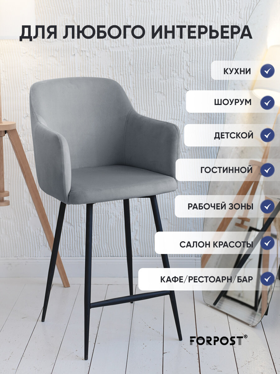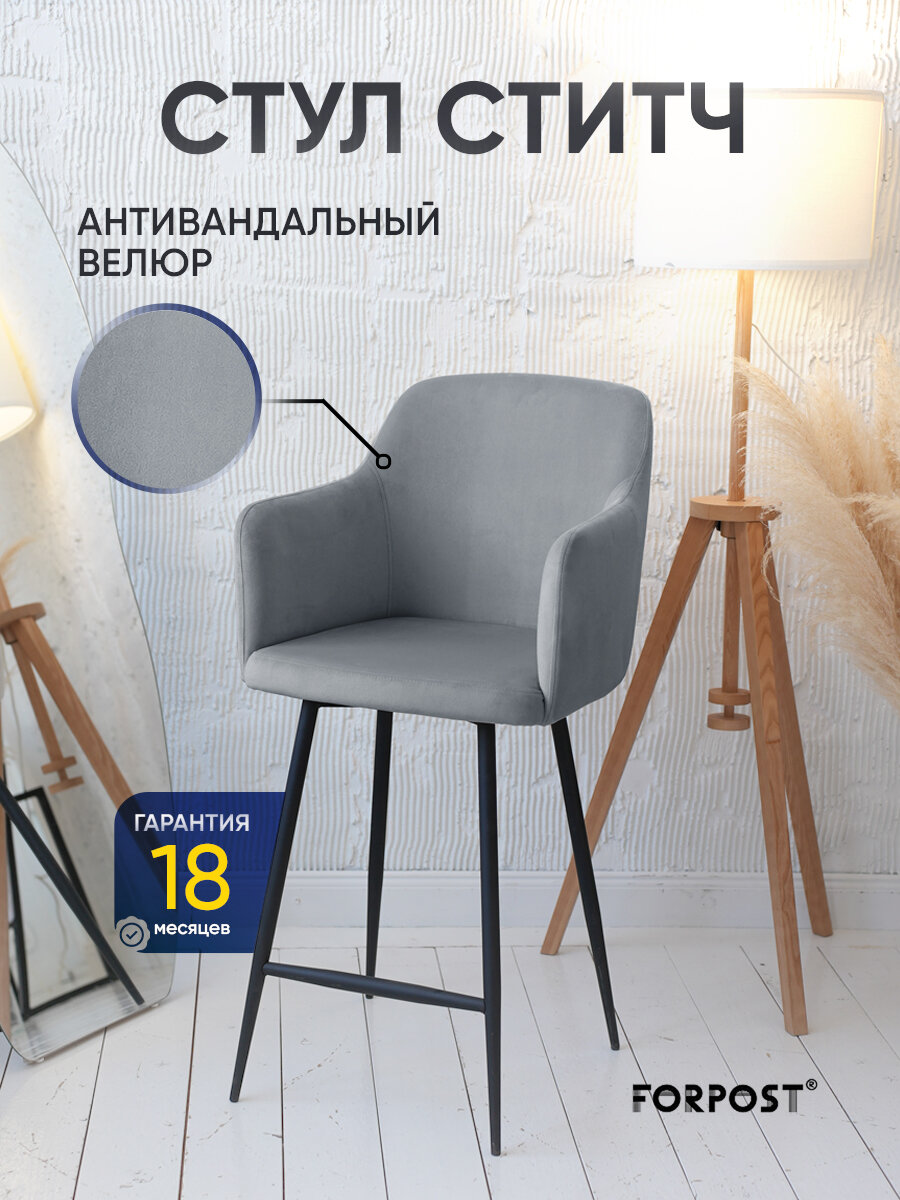 Барный стул со спинкой для кухни Ститч серый интересное:
