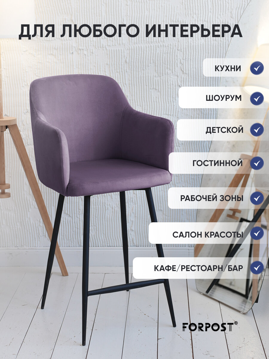 Барный стул со спинкой для кухни Ститч плюм интересное: