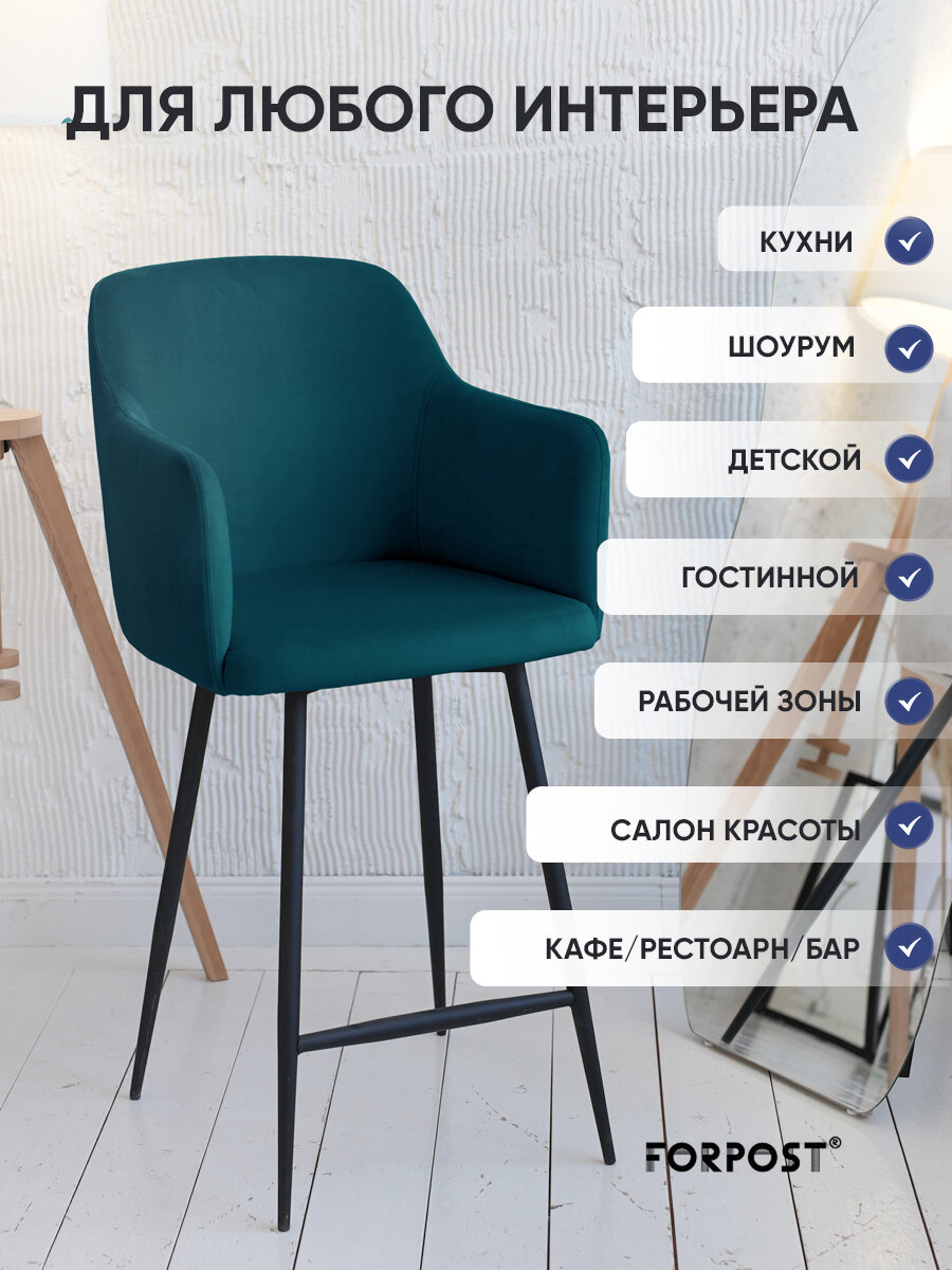 Барный стул со спинкой для кухни Ститч изумруд интересное: