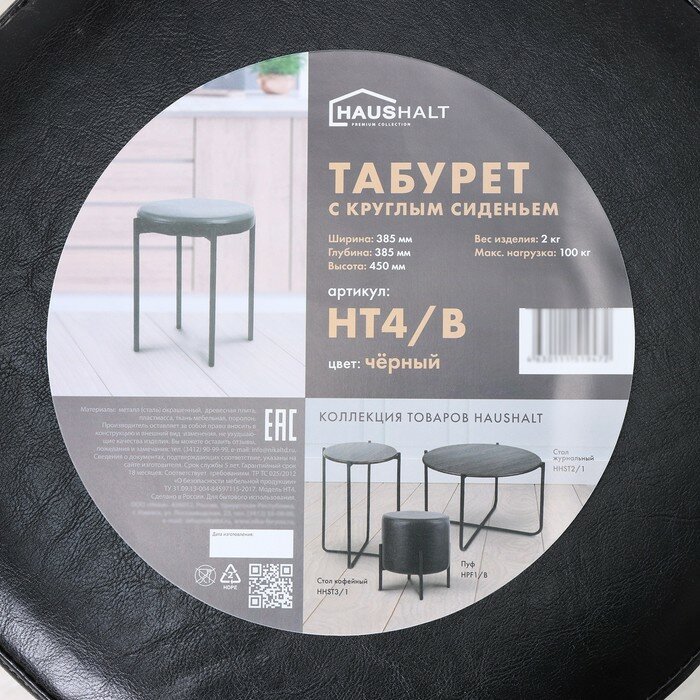 Nika Ника Табурет Haushalt с круглым сиденьем НТ4 Нт4/b черный .