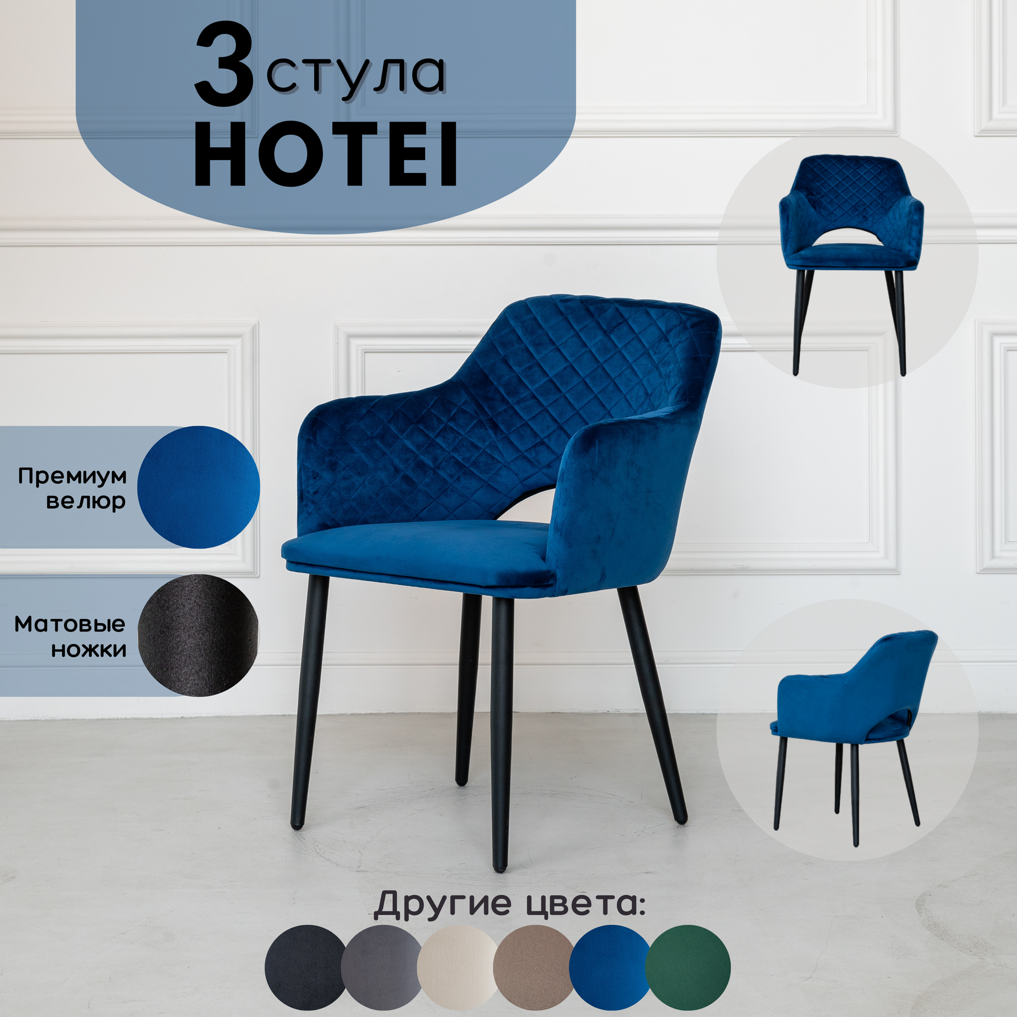 Ниже Вы можете прочитать отзывы на Стулья для кухни Hotei 3 шт, Синий велюр черные матовые ножки, ознакомится с подробными характеристиками, посмотреть интересные обзоры и фотографии на Стулья для кухни Hotei 3 шт, Синий велюр черные матовые ножки.