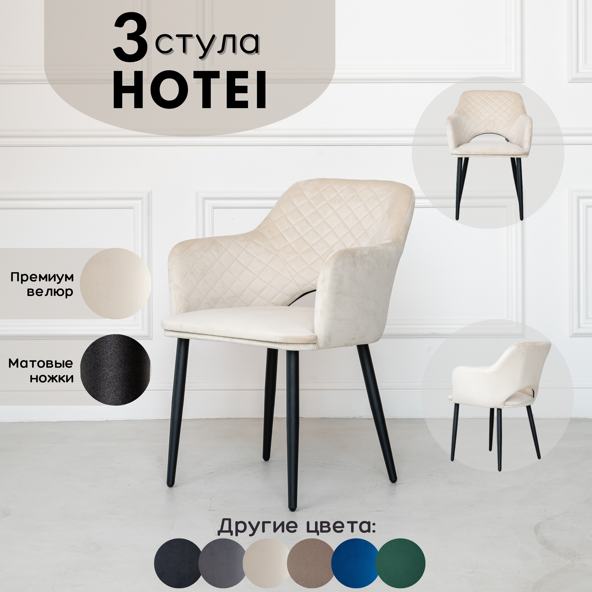 СохранитьСтулья для кухни Hotei 3 шт, Бежевый велюр черные матовые ножки интересное: