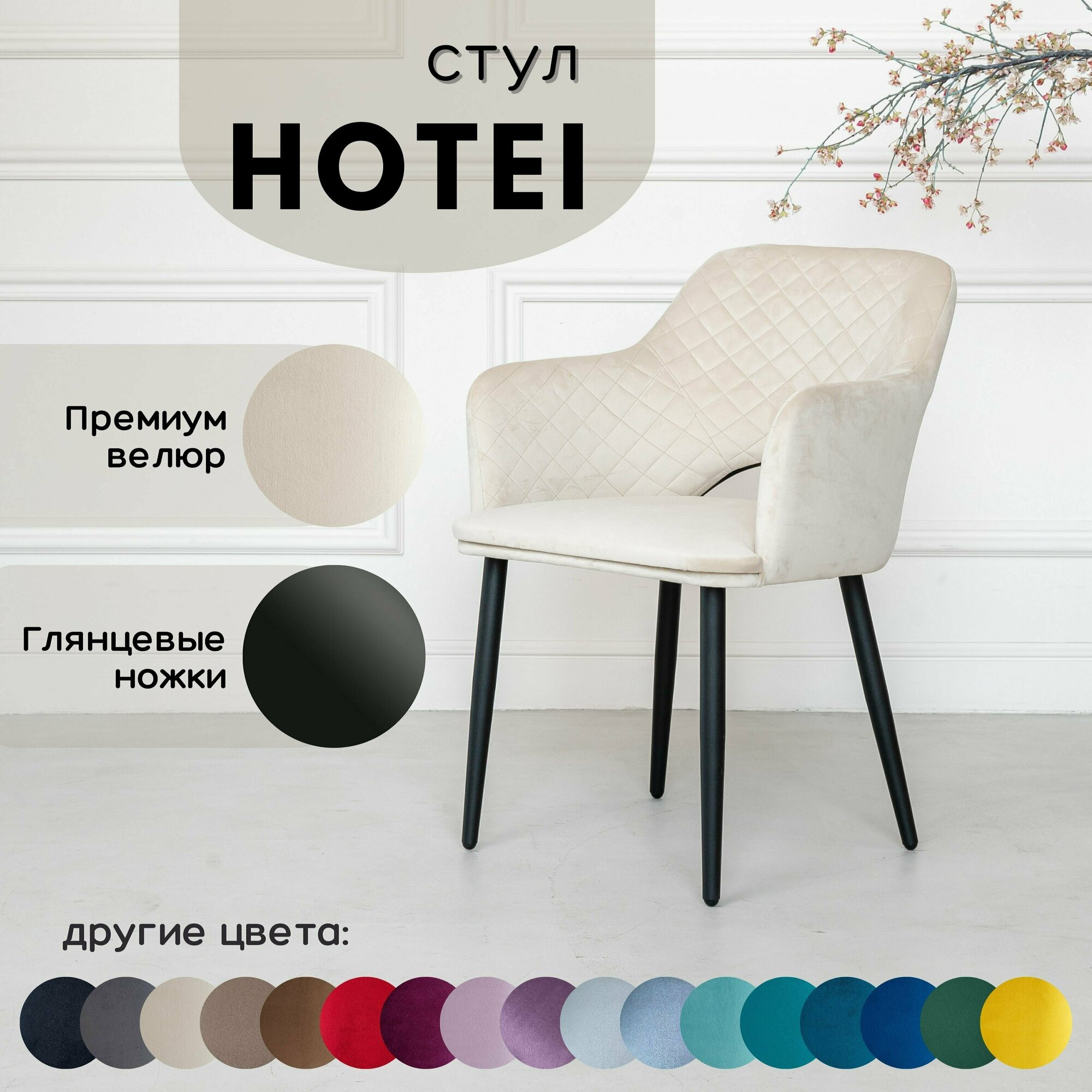 Купить Стул Hotei 1 шт, Бежевый велюр, черные глянцевые ножки