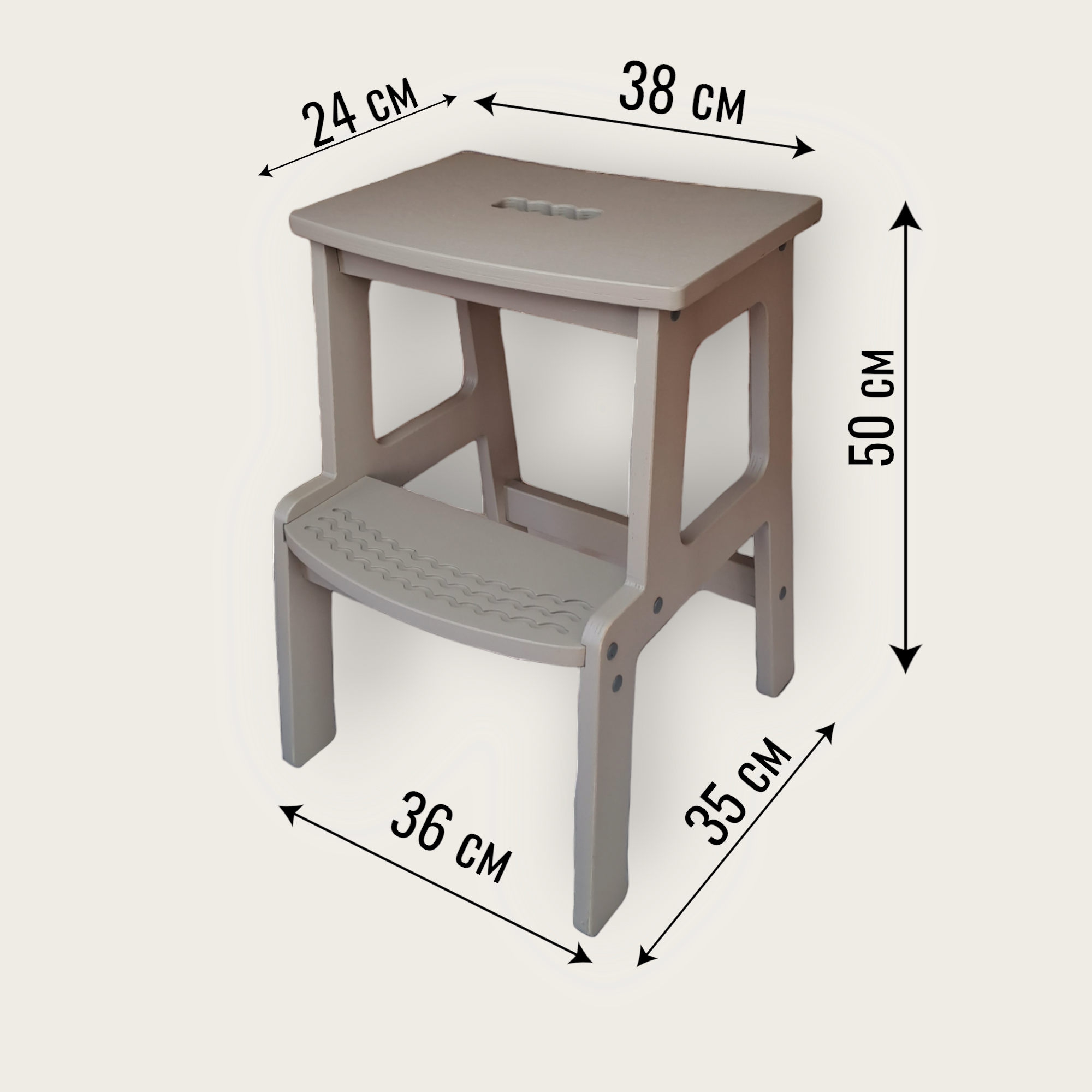 Табурет-стремянка V-ART, 38см x 30см x 50см, массив березы, максимальная нагрузка 150кг, цвет капучино