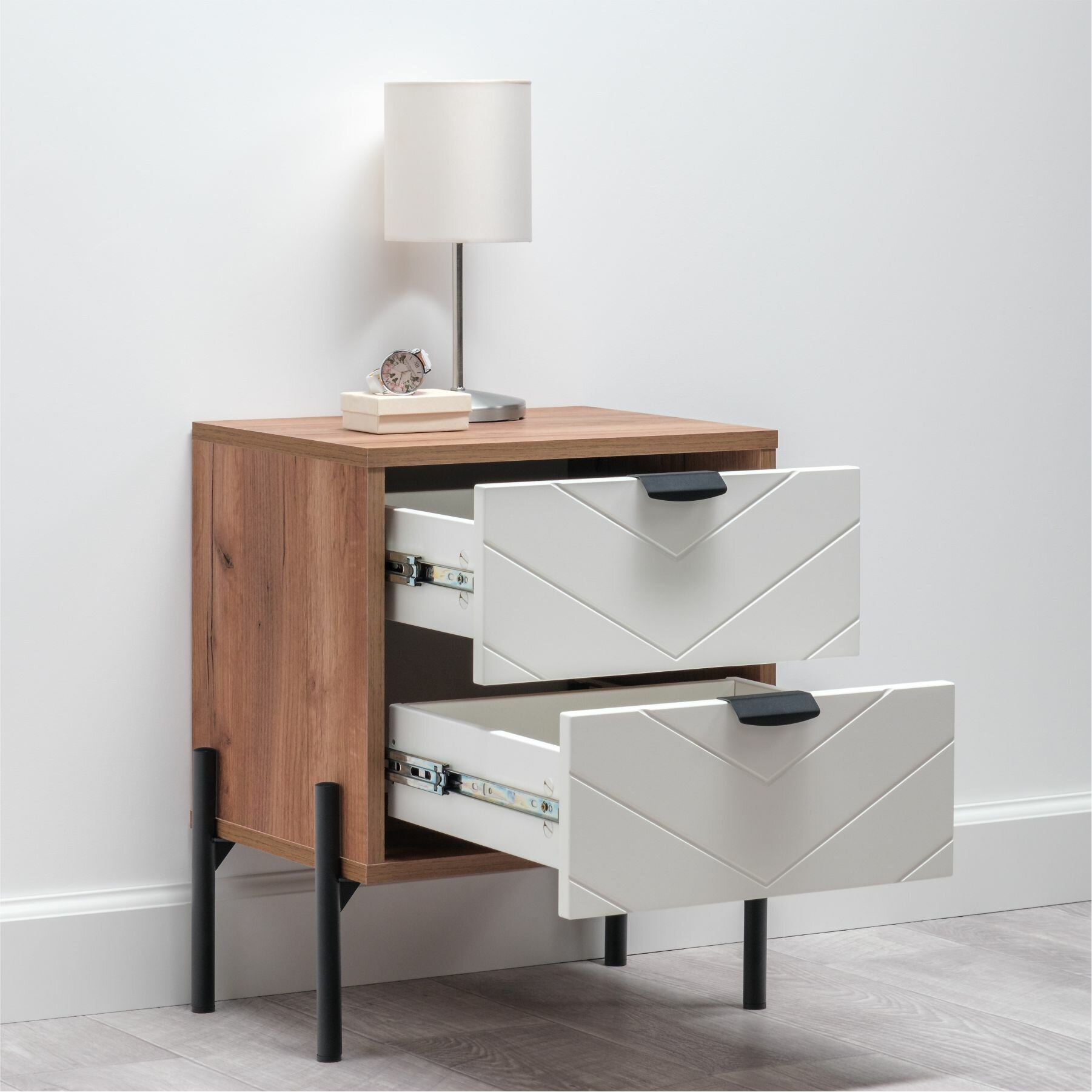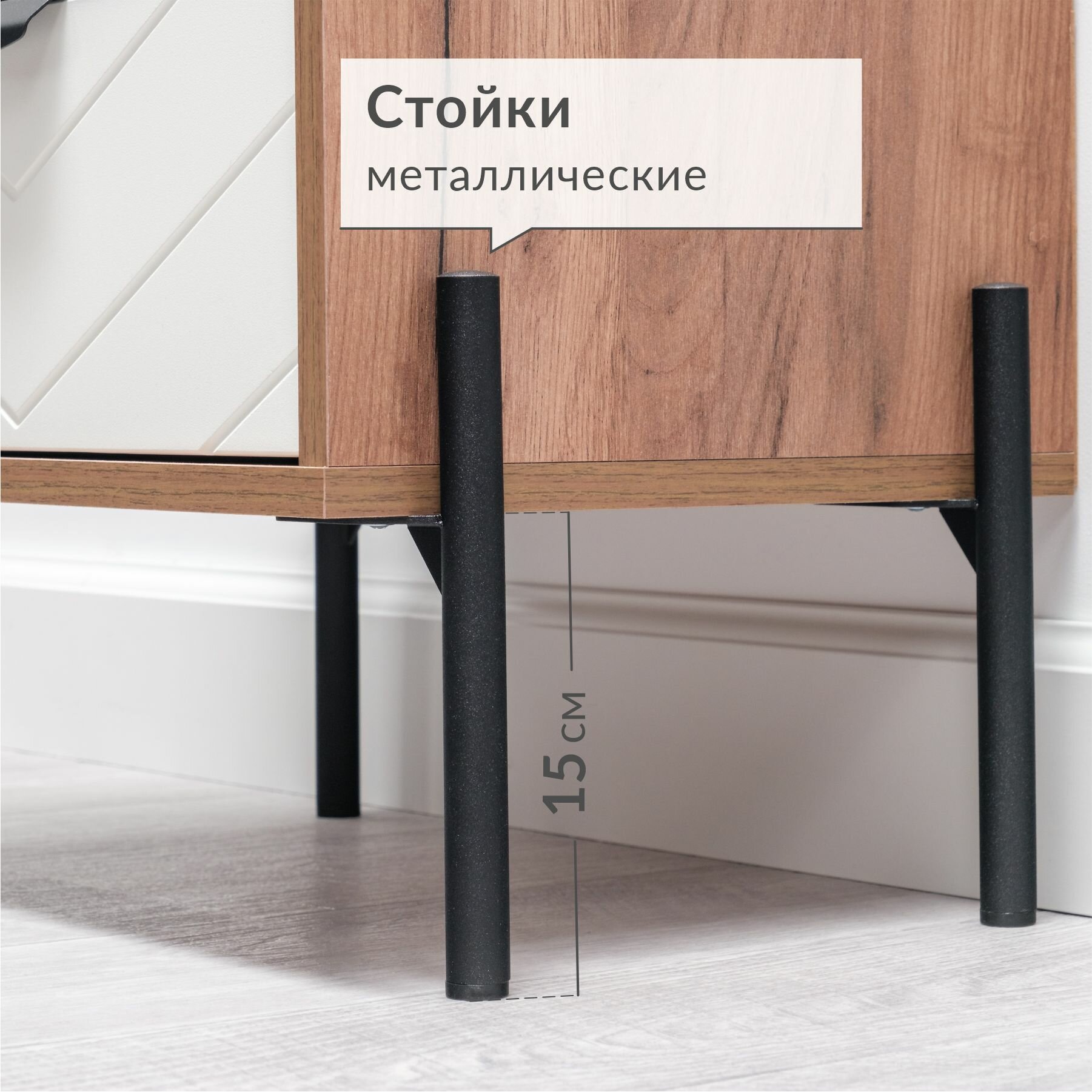 Тумба прикроватная с ящиками Венеция 16.10, Дуб Эндгрейн элегантный, Веллюто Капучино