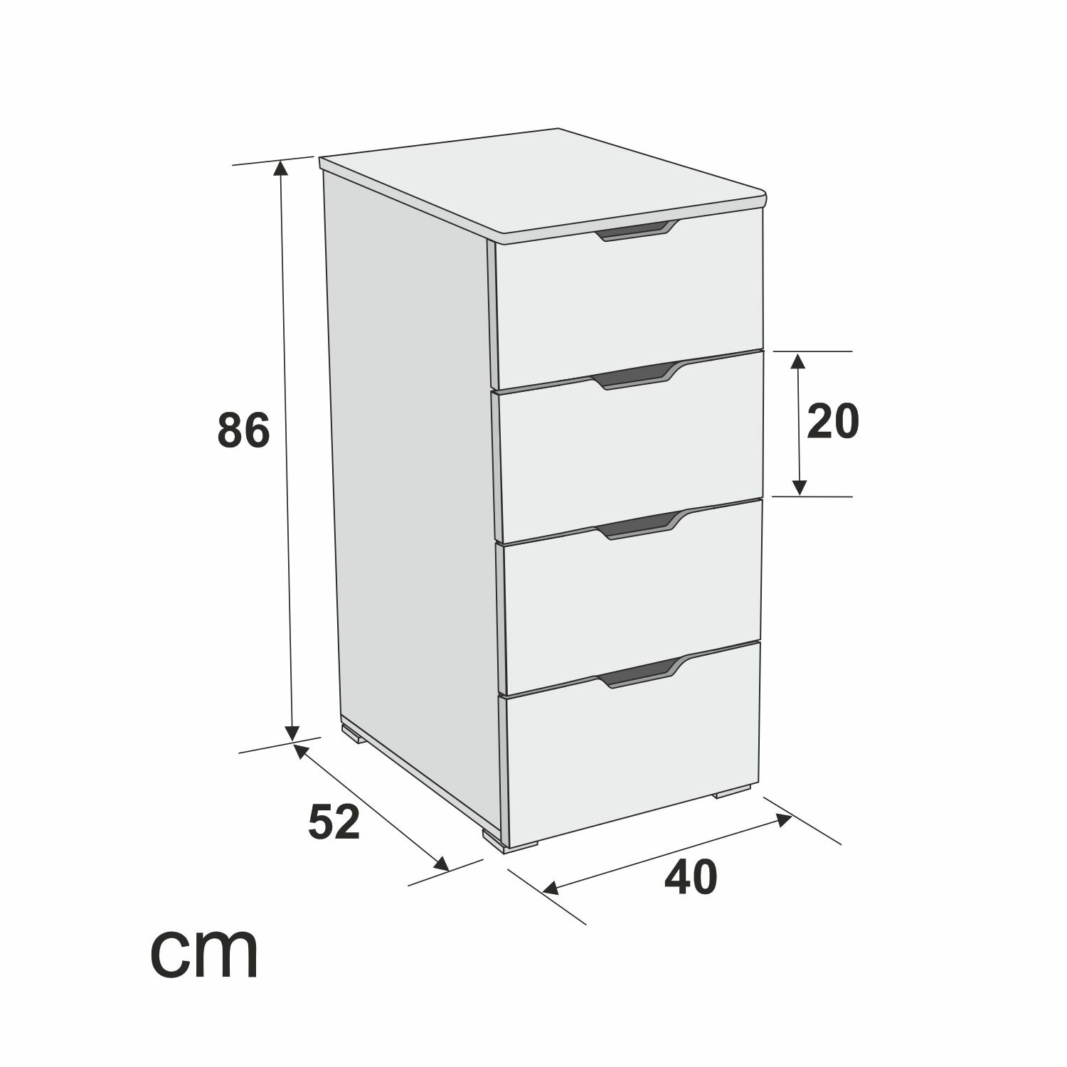 Купить Тумба (комод) с 4 ящиками, в спальню, в гостиную, в прихожую, 40х52х86 см, Momal белая