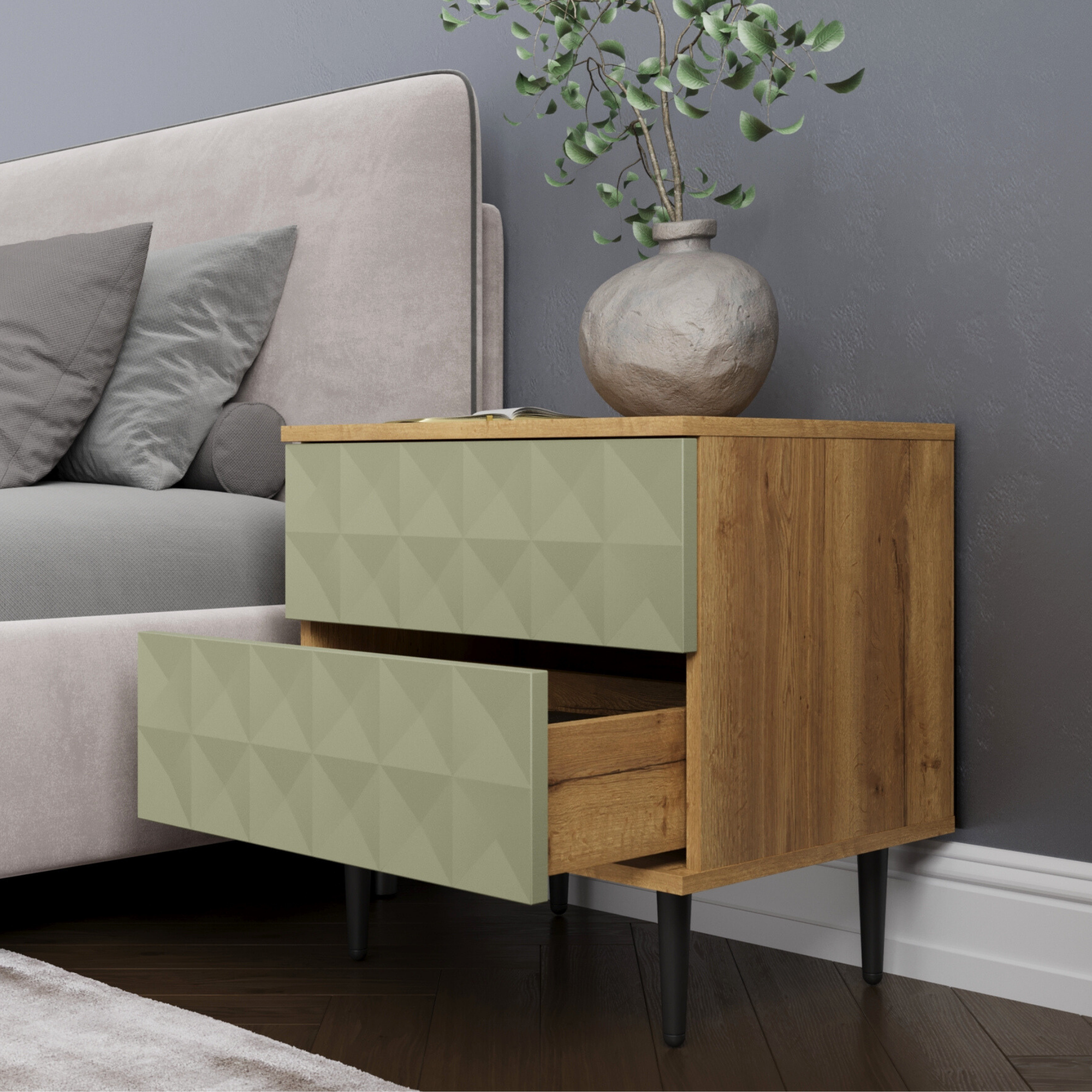 Купить Прикроватная тумба на ножках Йорк Олива, зеленая