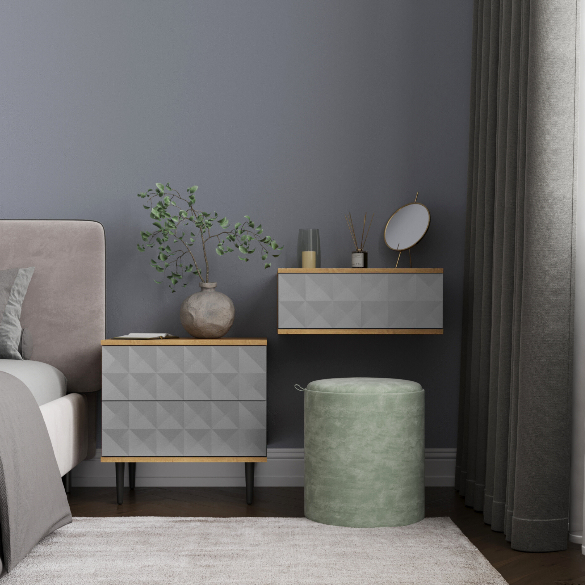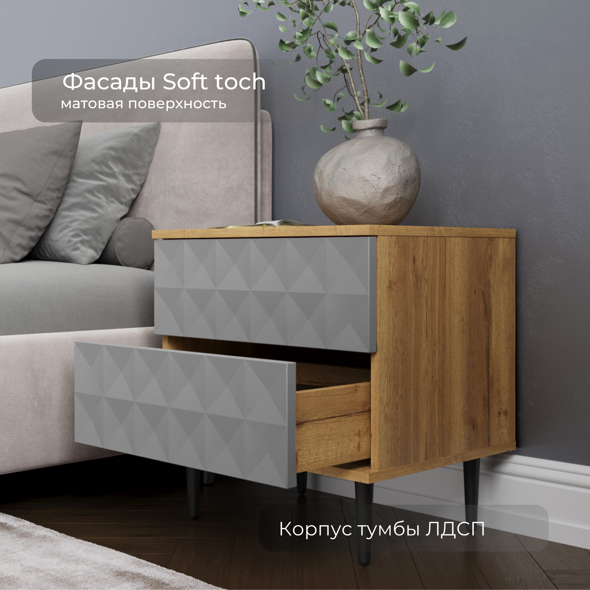Прикроватная тумба на ножках Йорк Кварц, серая интересное: