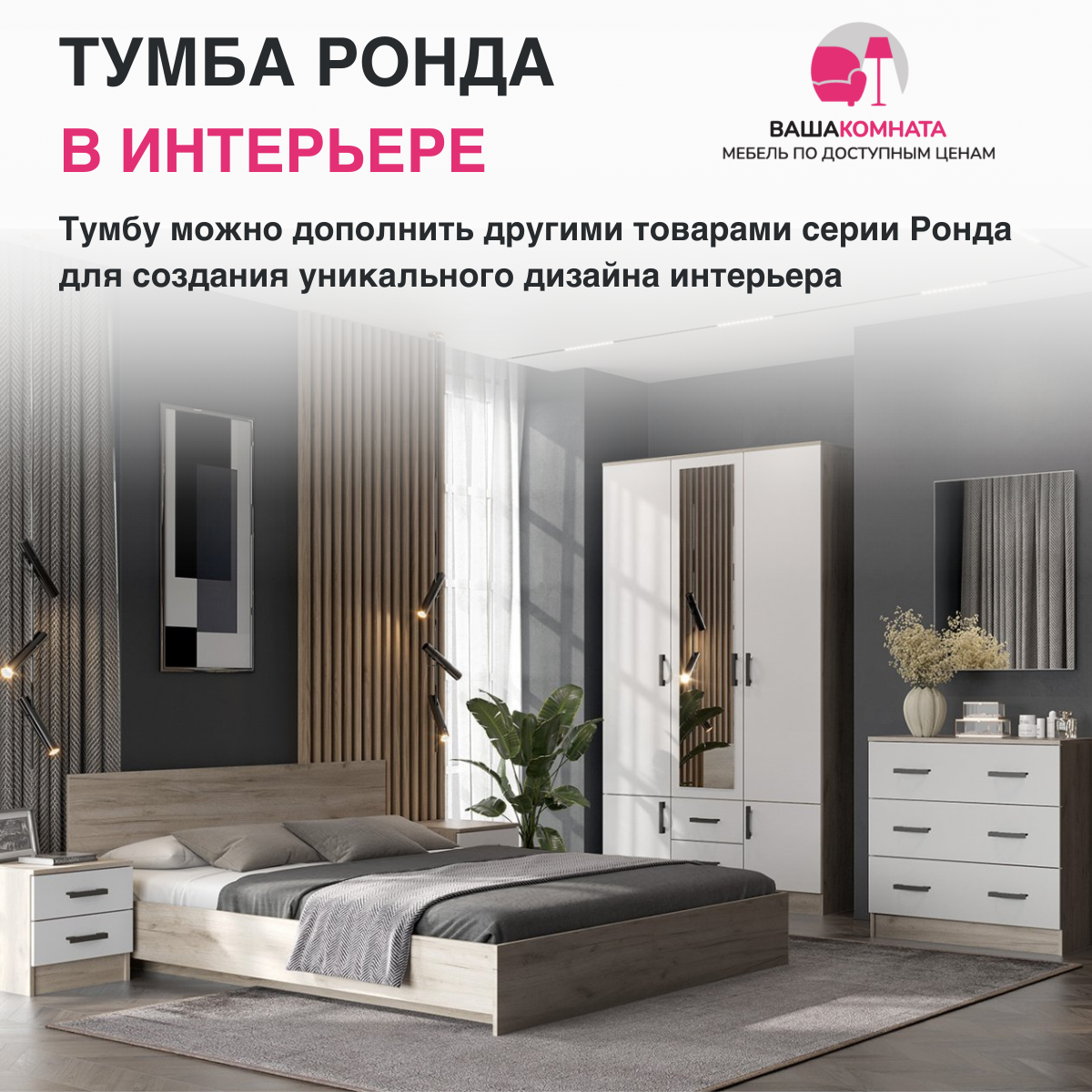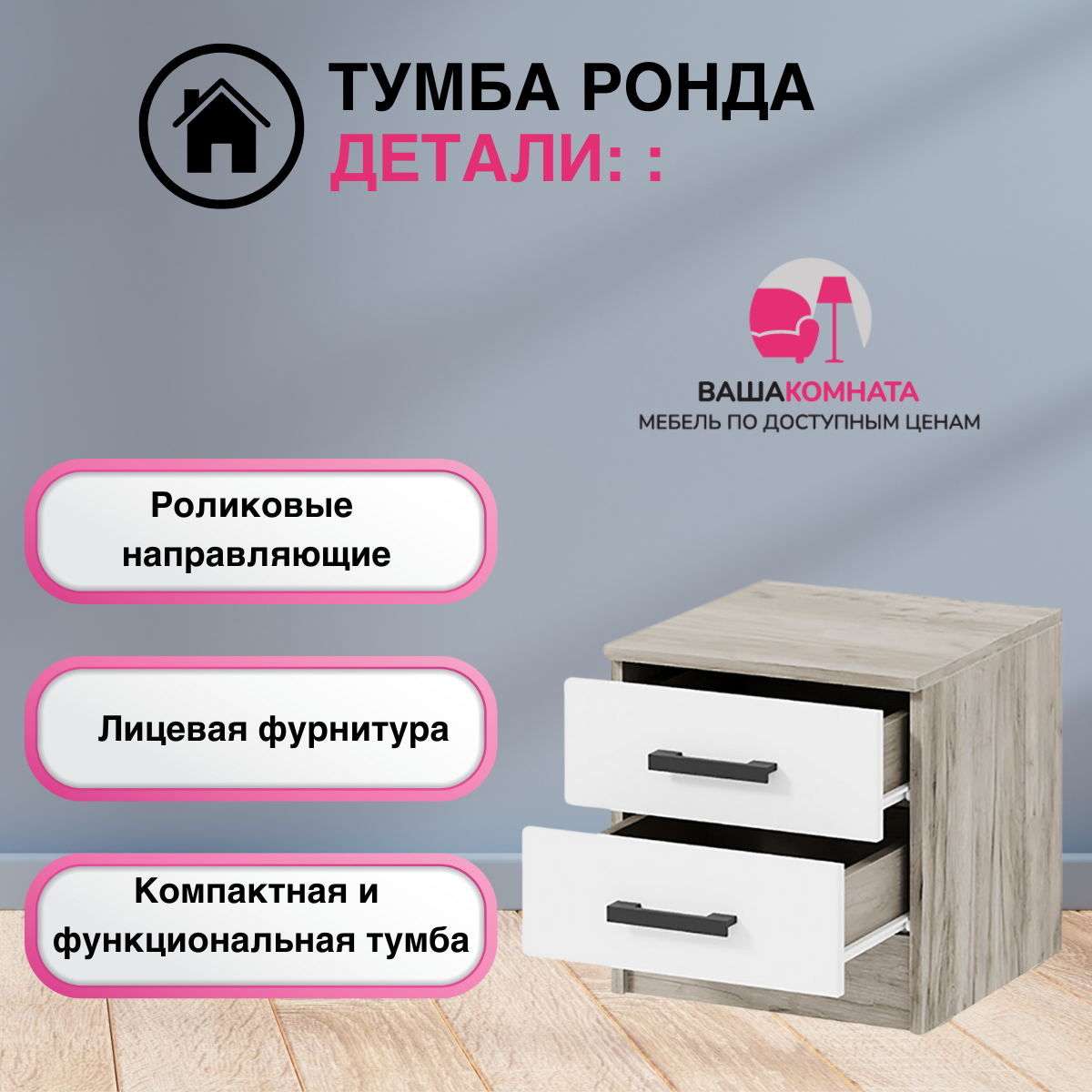 Тумба прикроватная ТБ "ронда" - Дуб крафт серый / Белый интересное: