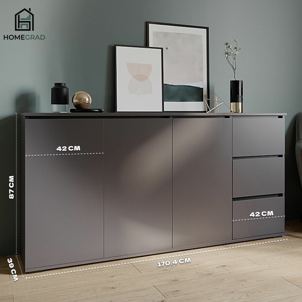 Купить Комод / тумба для вещей и одежды с ящиками и полками HomeGrad Sura 1704, графит