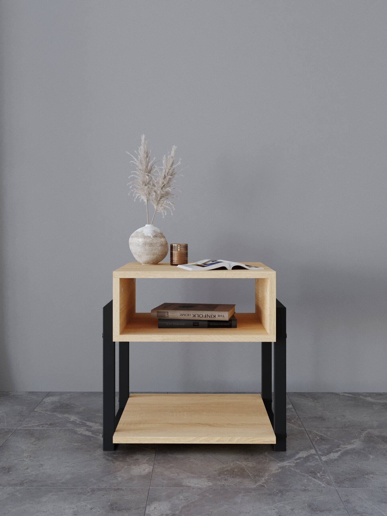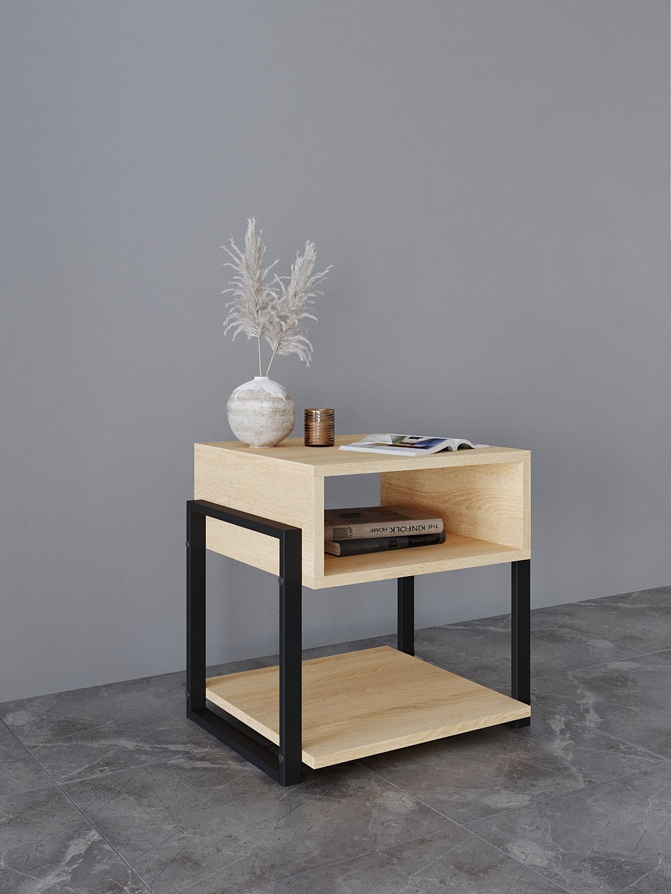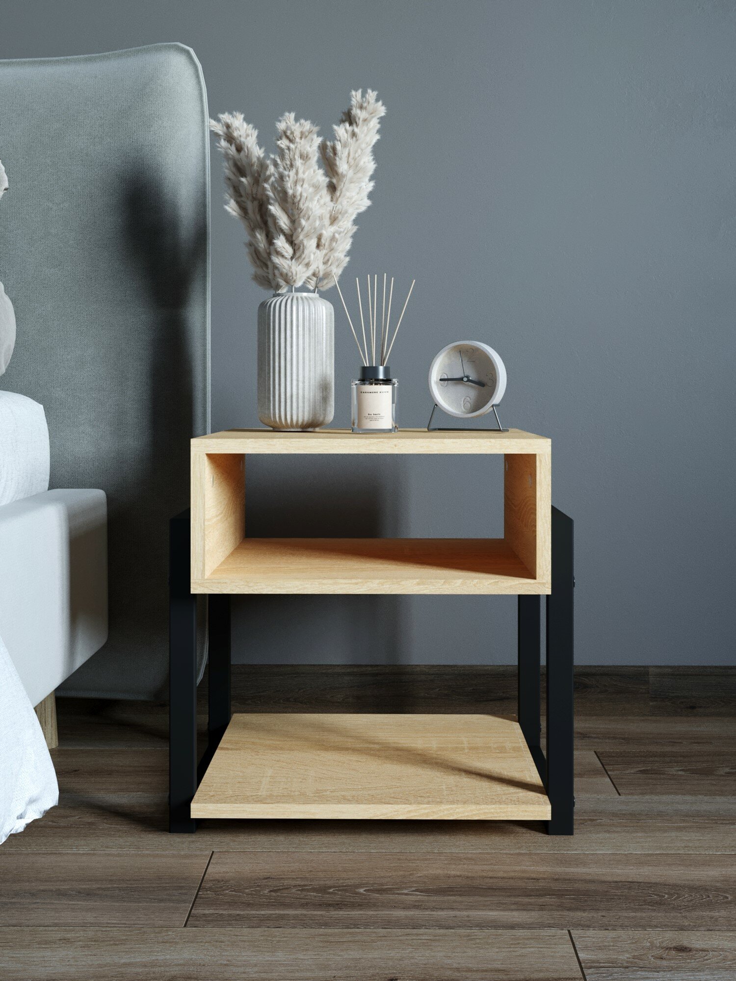 Тумба прикроватная для спальни, гостиной лофт KM LOFT черный/дуб сонома