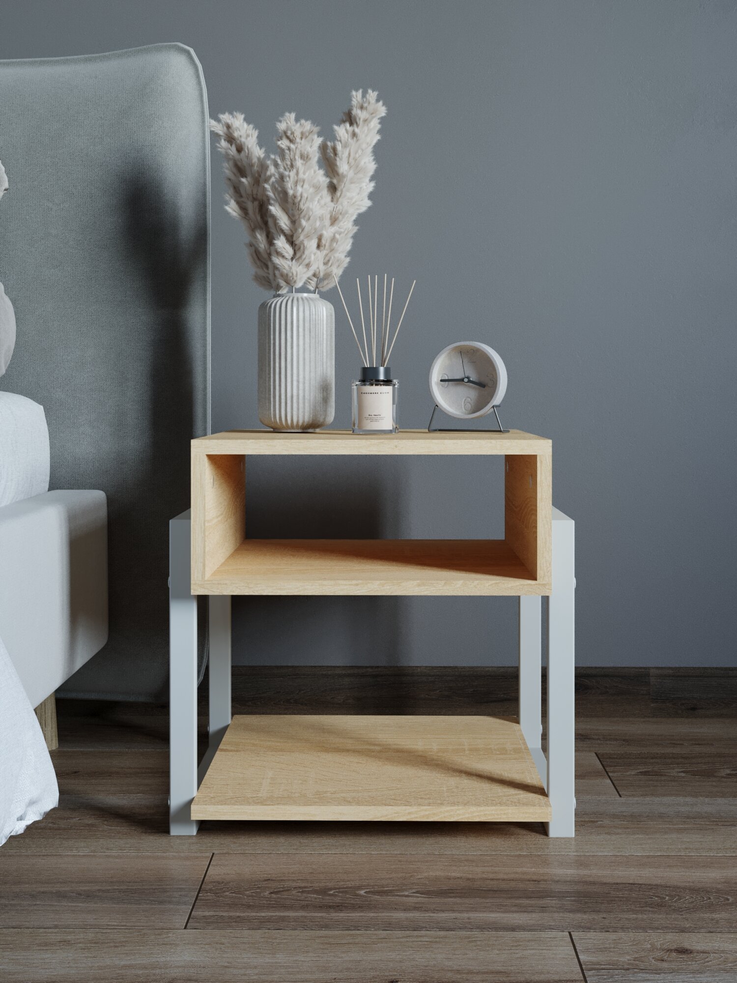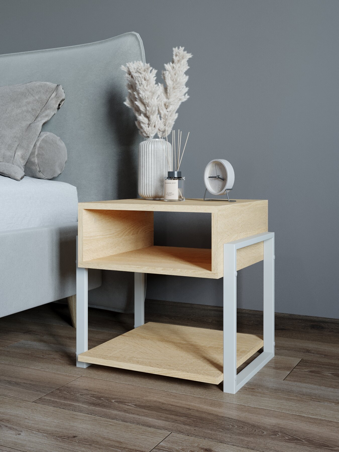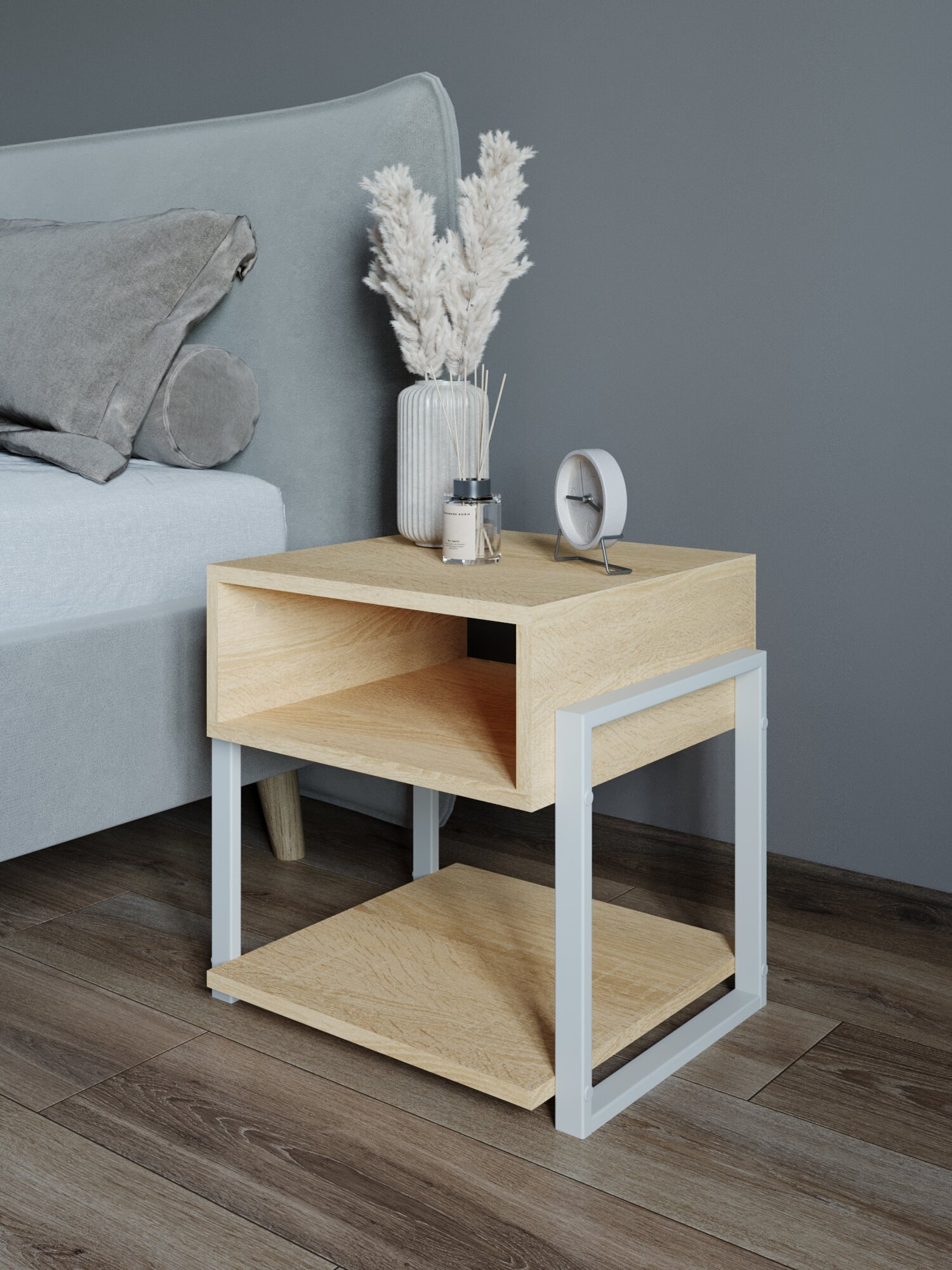 Тумба прикроватная для спальни, гостиной лофт KM LOFT белый/дуб сонома