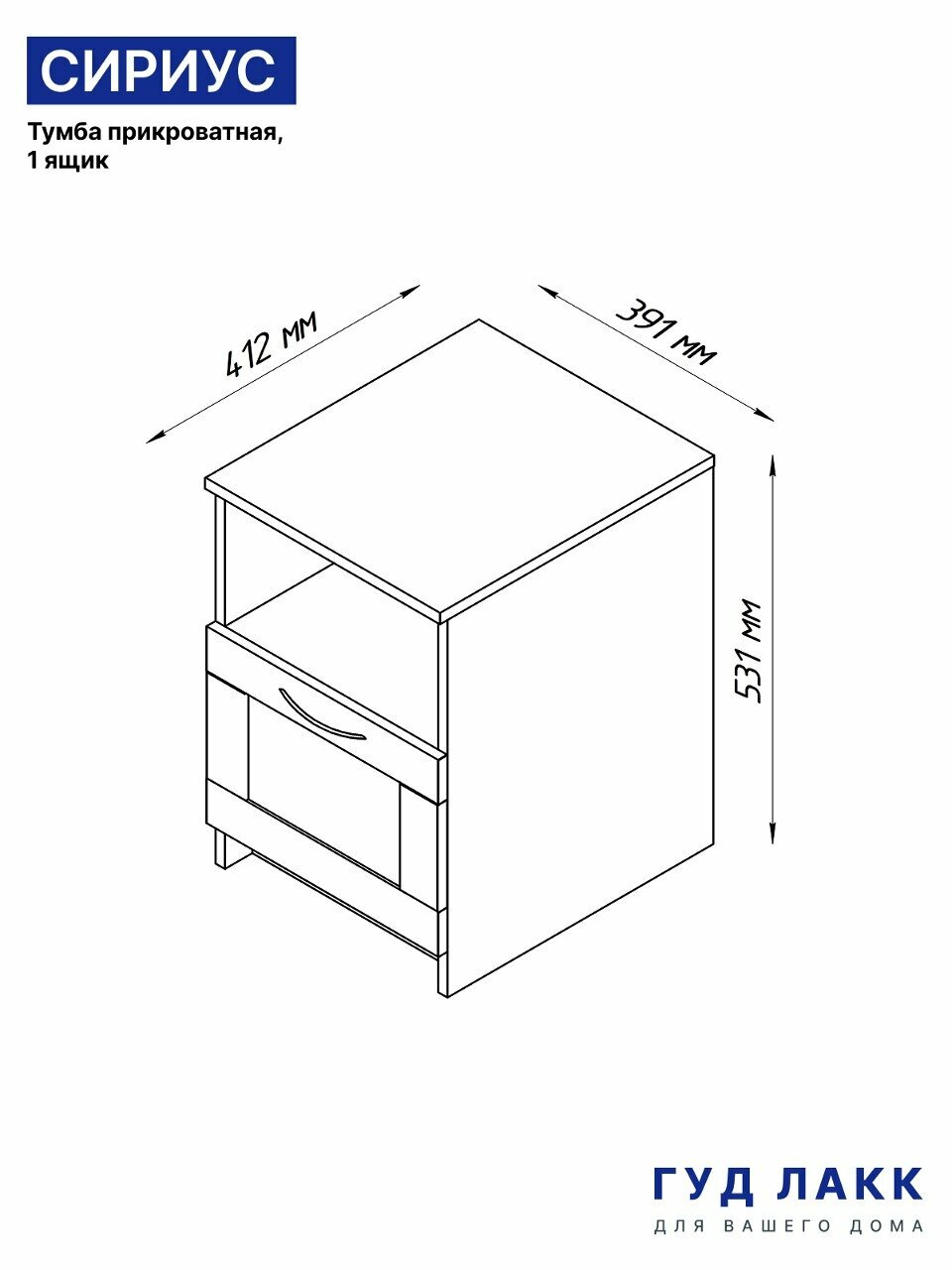 СохранитьТумба прикроватная ГУД ЛАКК Сириус, 1 ящик, 41х39х53 см, белая интересное: