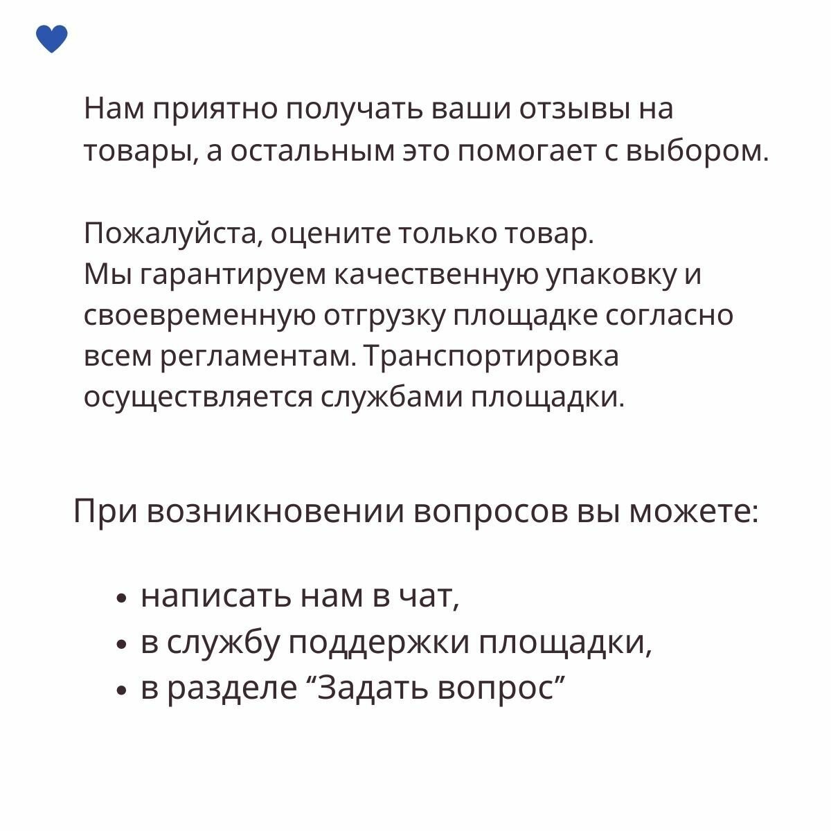 | Условия возврата | Если товар вам не подошел или не понравился, вы можете вернуть его в течение 7 календарных дней со дня получения. Подробнее про условия возврата написано здесь. |