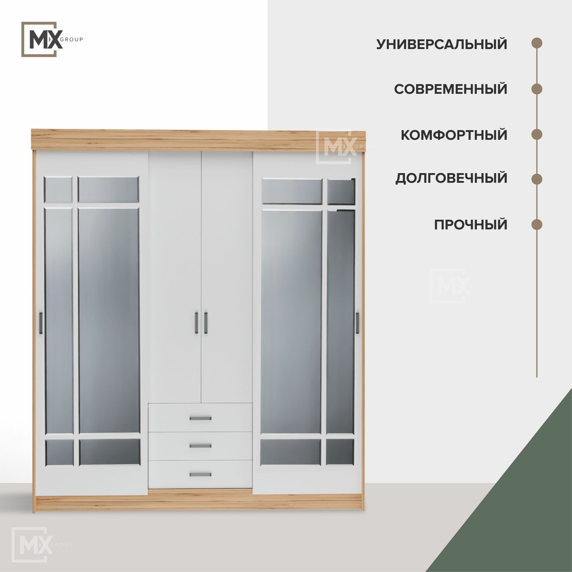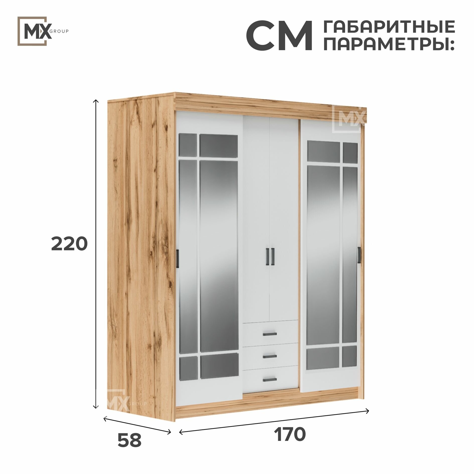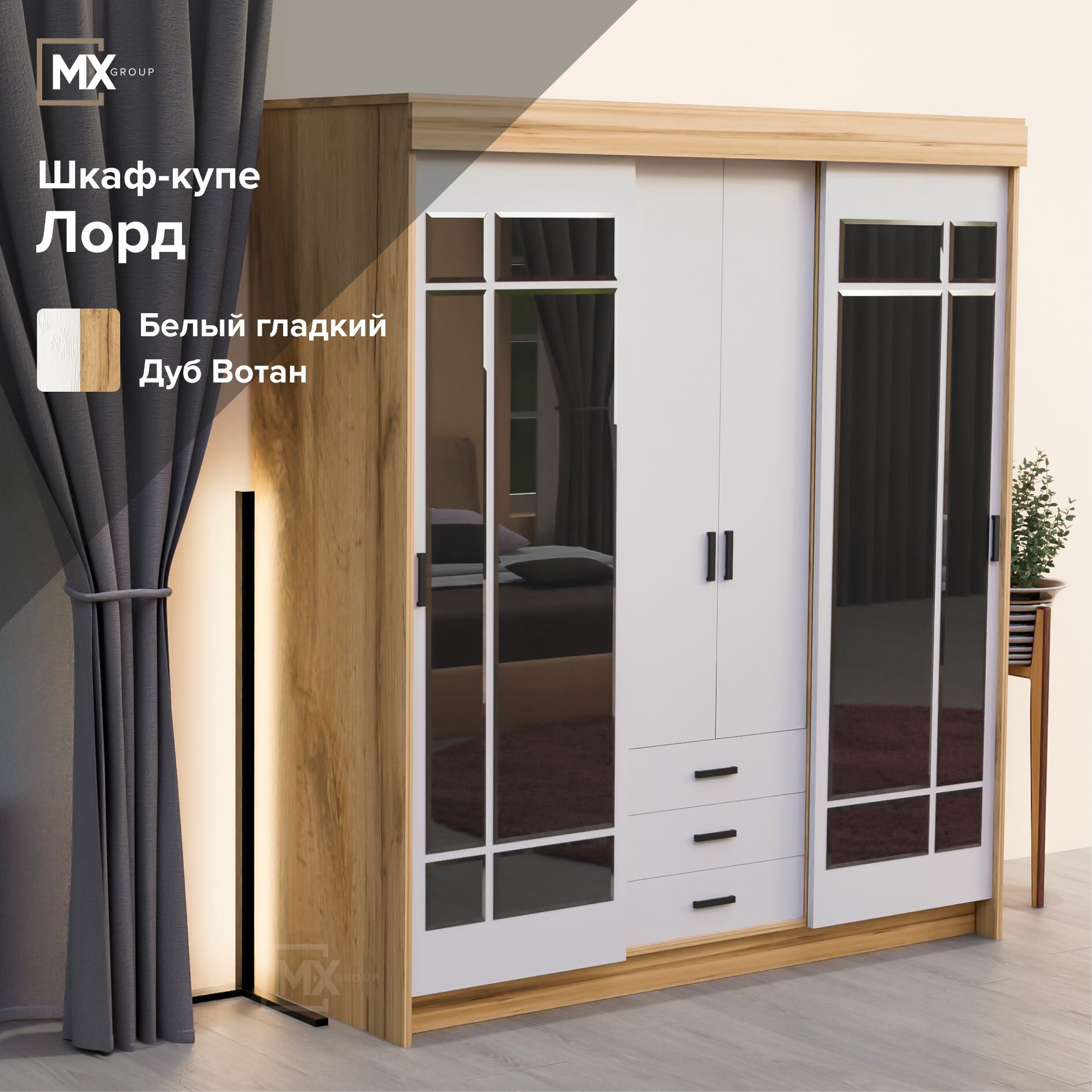 Шкаф-купе Лорд/ Фортуна/ Маэстро,Дуб Вотан/Белый гладкий, ЛДСП, с полками, ящиками, штангами, зеркалом, для спальни, гостиной, 1700х2200х580, Эра интересное: