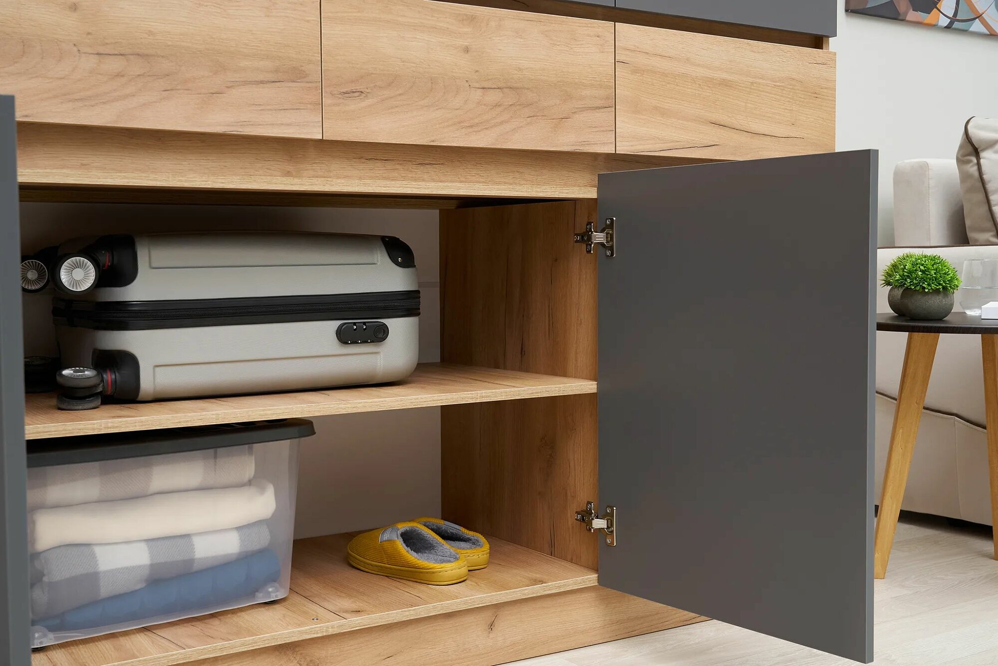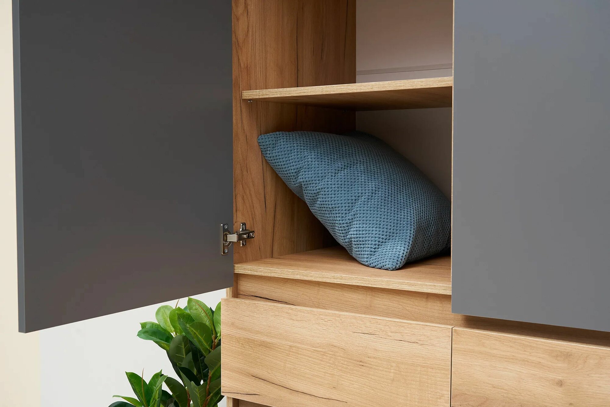Шкаф для одежды с ящиками Нонтон Роджина, дуб крафт / графит, 199 см