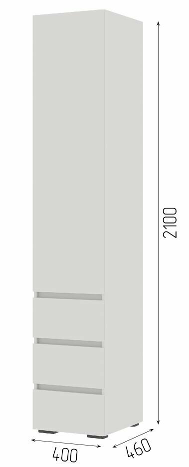 Пенал с ящиками Хелен ПН-03 (400*2100*460, ЛДСП, Белый шагрень, Стендмебель)