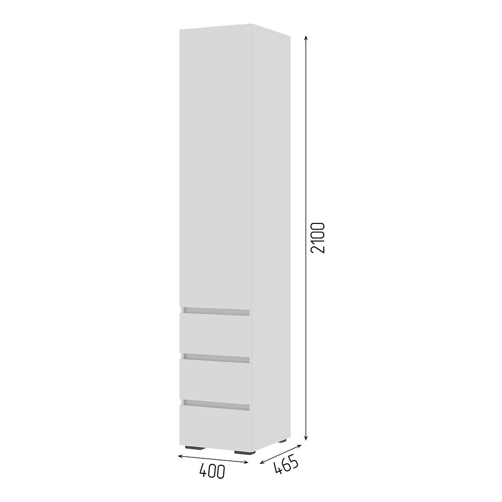 Пенал с ящиками Хелен ПН-03 (400*2100*460, ЛДСП, Белый шагрень, Стендмебель)