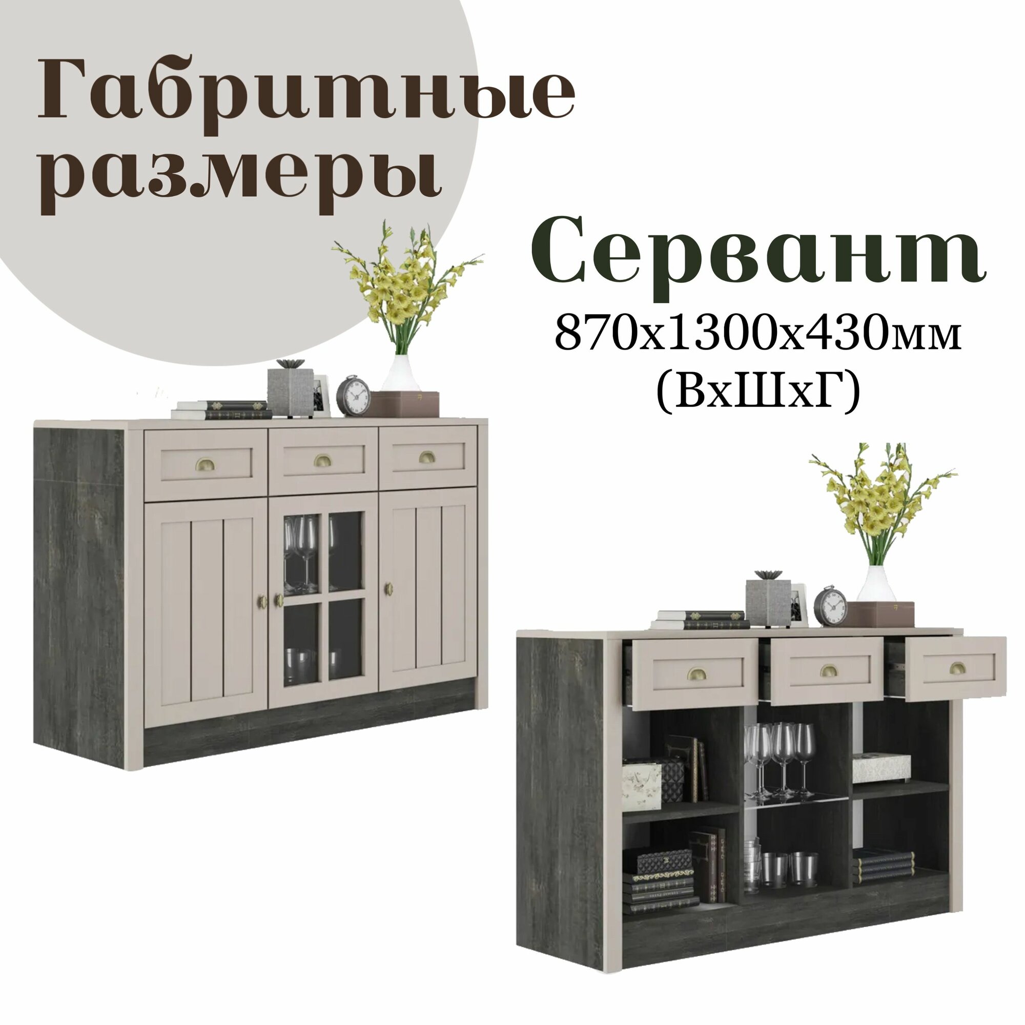 | Комплектация | Сервант, фурнитура, схема сборки |