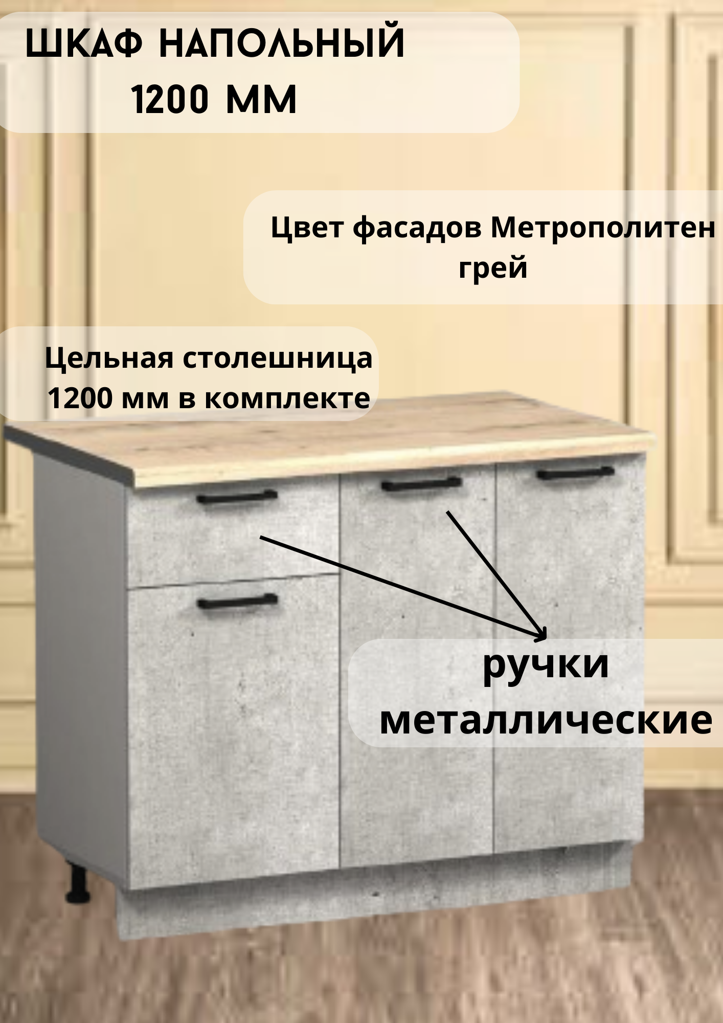 "GoodHome" - кухонный шкаф со столешницей 120х60 см, серый цвет, ЛДСП и металл интересное: