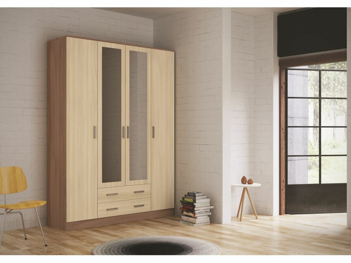 Купить Шкаф распашной Квадро 4х створчатый с зеркалом, Ясень шимо светлый/Ясень шимо темный