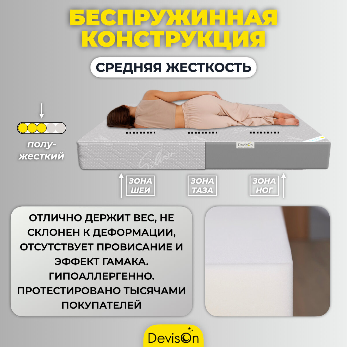 Матрас ортопедический беспружинный для двуспальной кровати на диван Devison Simple 160х200х12 см интересное: