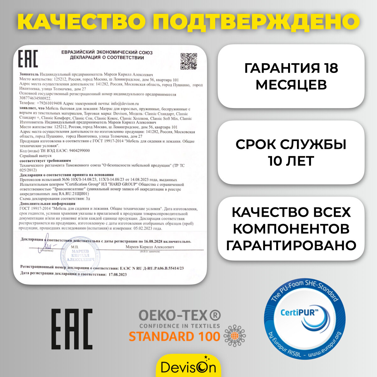 Матрас ортопедический беспружинный для двуспальной кровати на диван Devison Simple 140х200х12 см интересное:
