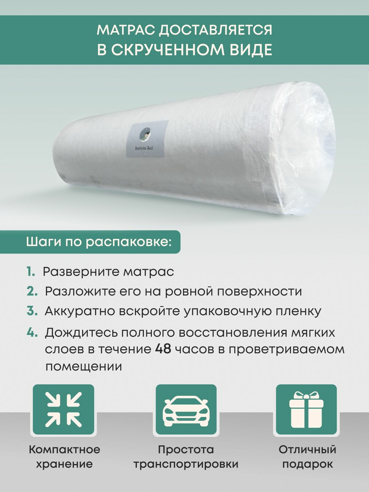 Матрас детский 180х90 см беспружинный, BambinoBed