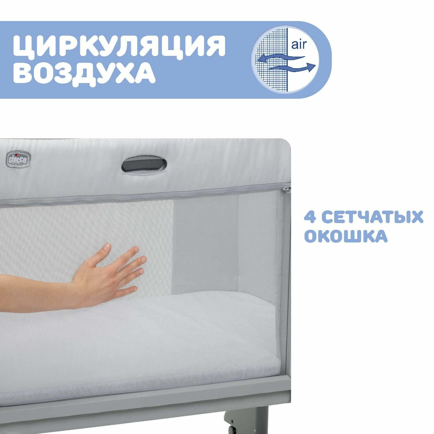 Купить Кроватка детская приставная 3 в 1 Chicco NEXT2ME FOREVER для новорожденных светло-серая