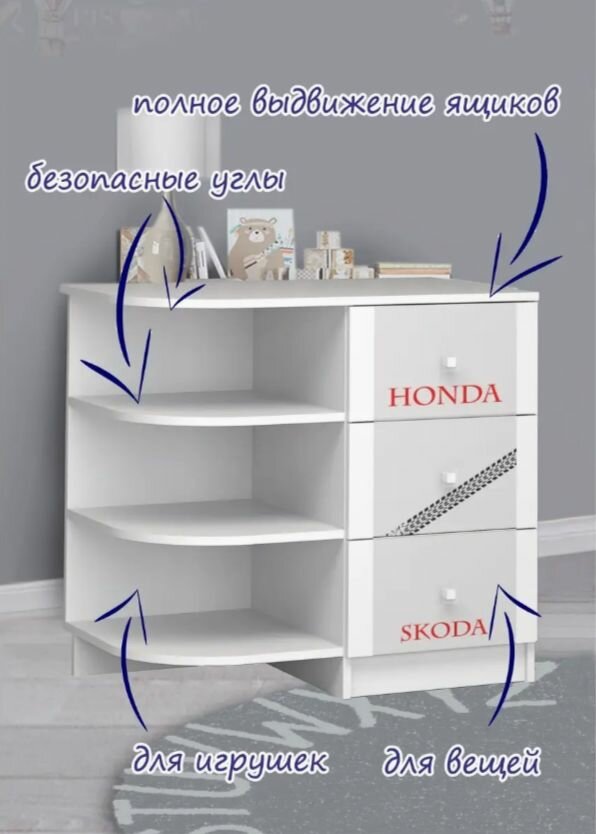 Комод детский с полками Машинки / тумба в детскую / комод в детскую / комод белый интересное: