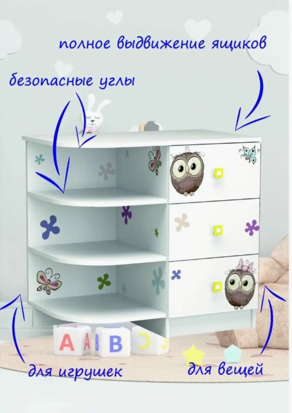 Комод детский с полками Совята / тумба в детскую / комод белый / комод в детскую интересное: