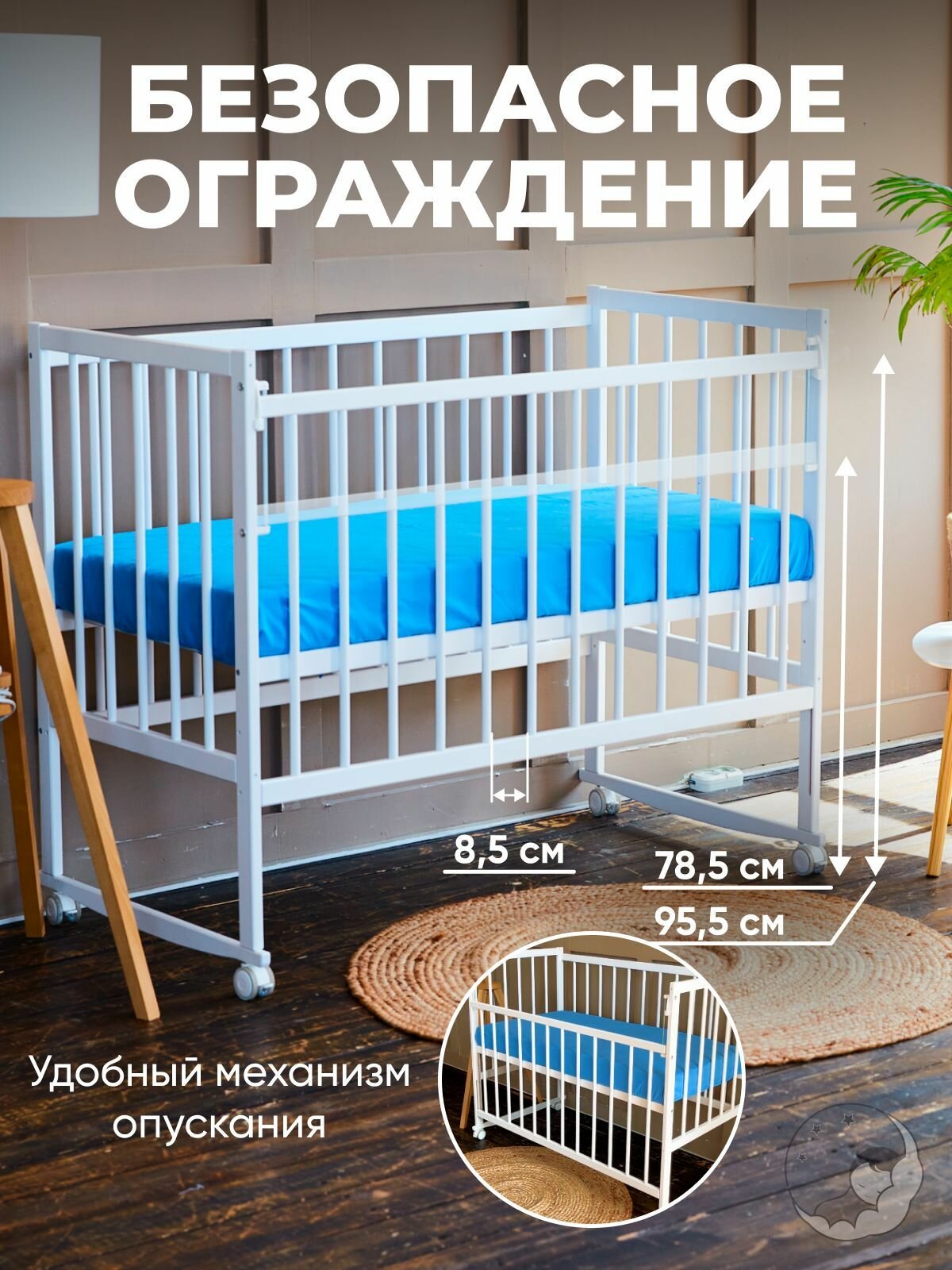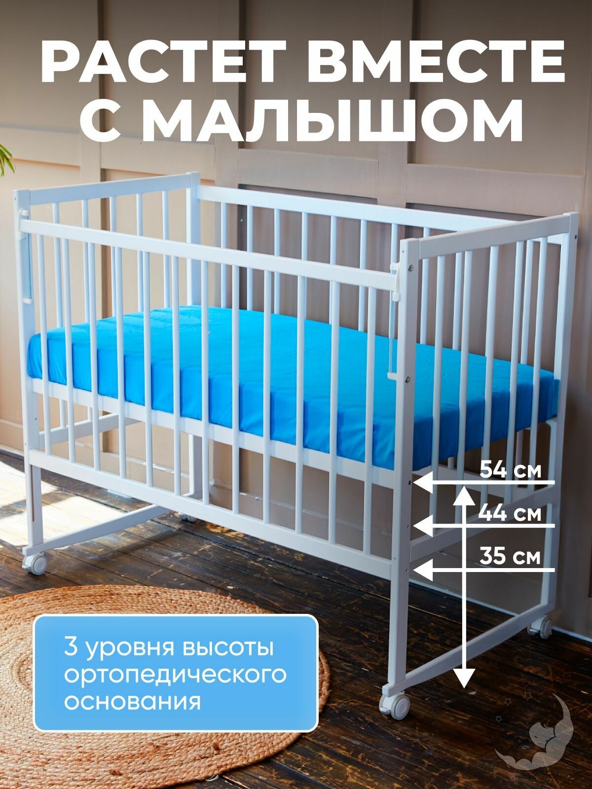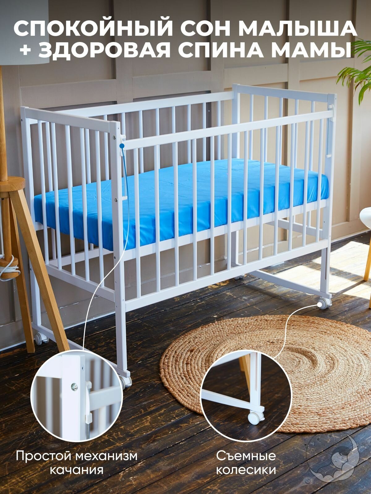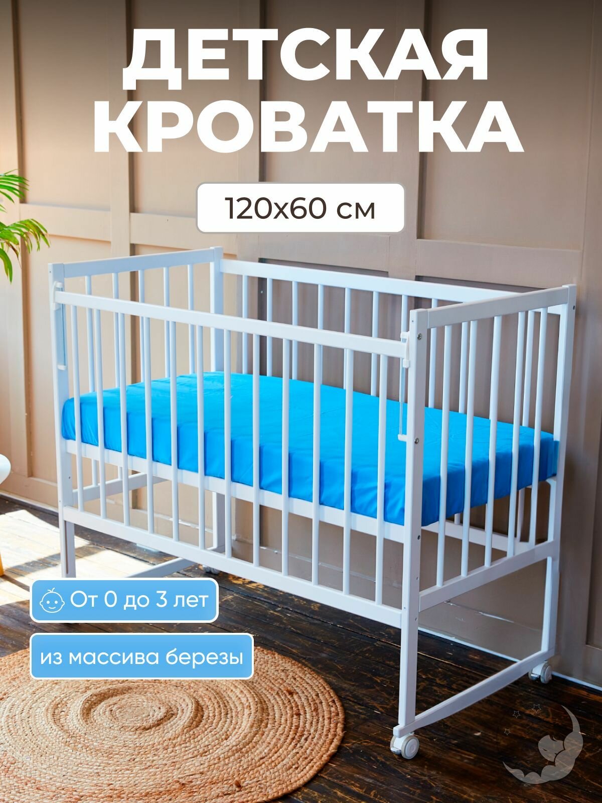 Кроватка для новорожденных без маятника из массива березы, 120х60 см, белая, BambinoBed интересное: