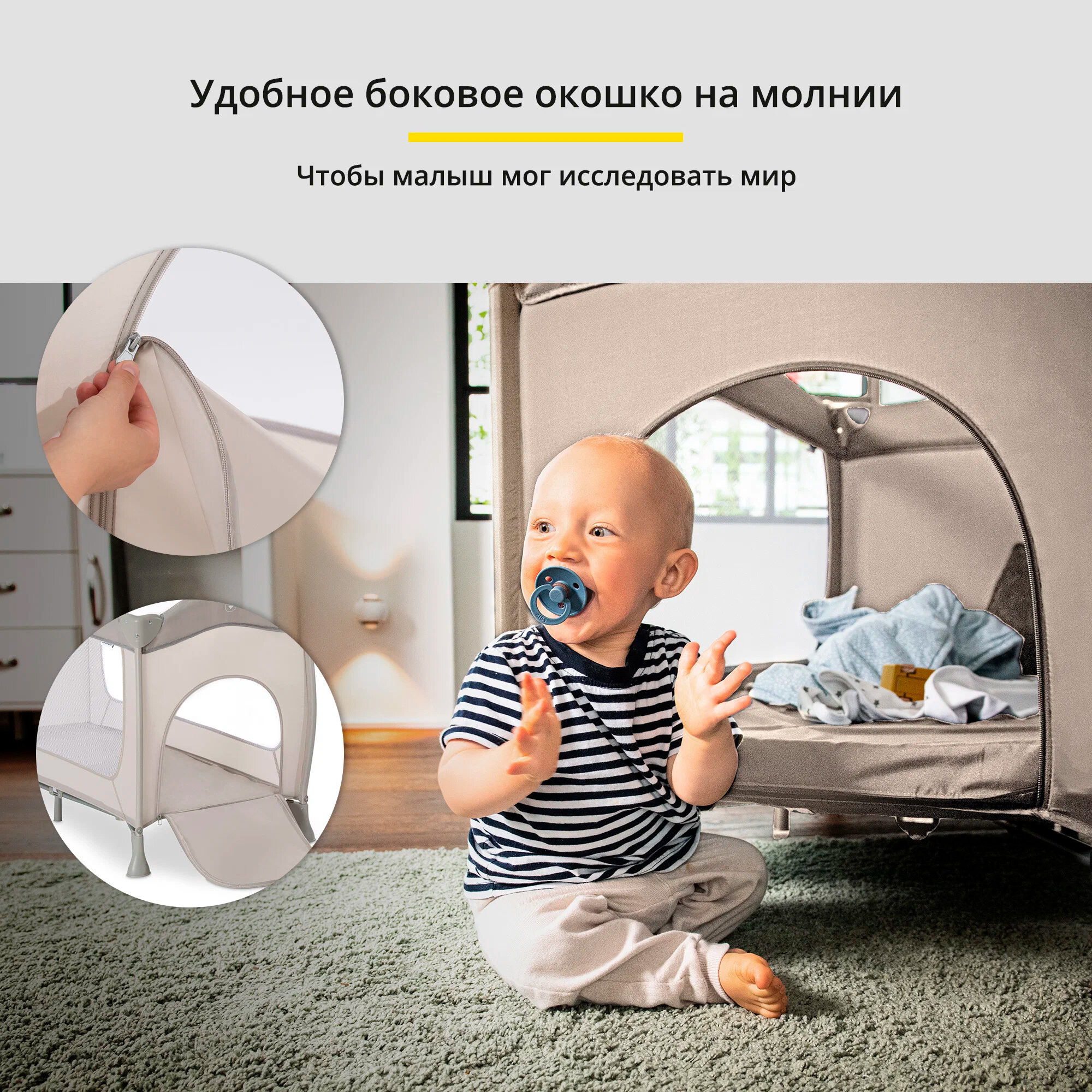| Особенности | боковой лаз / можно использовать с рождения / с колесами / складной / стенки из ткани/сетки |
