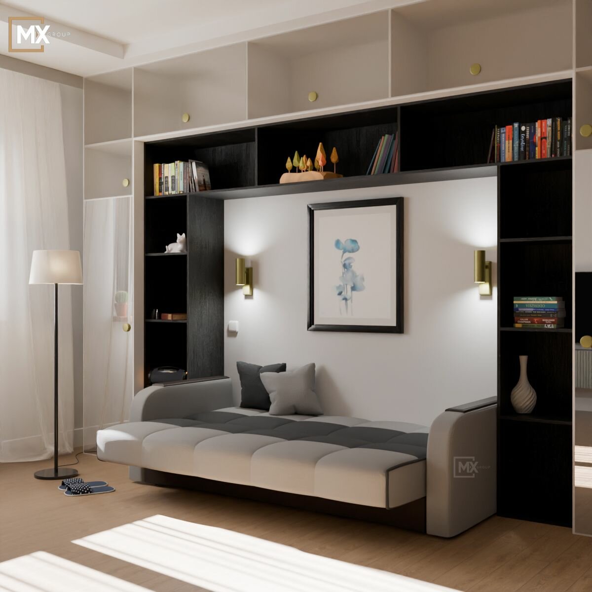 Диван-книжка прямой, темно серый/светло серый ЛДСП/ПБ для гостиной, спальни, 210х90х90 (185х40х120)мебельный РАЙ интересное:
