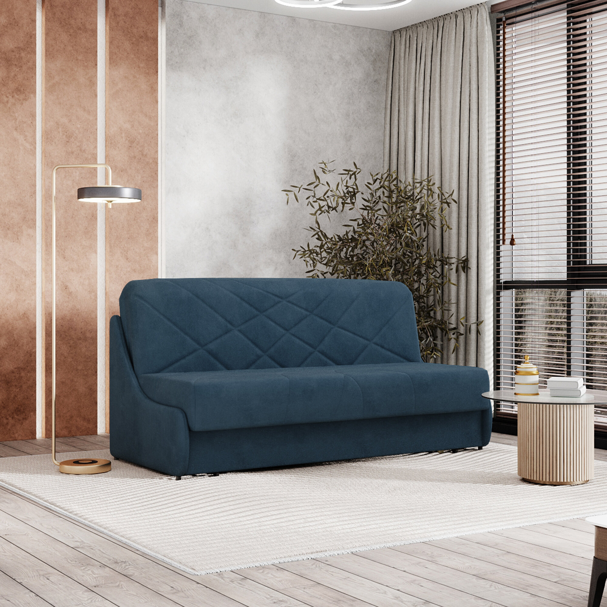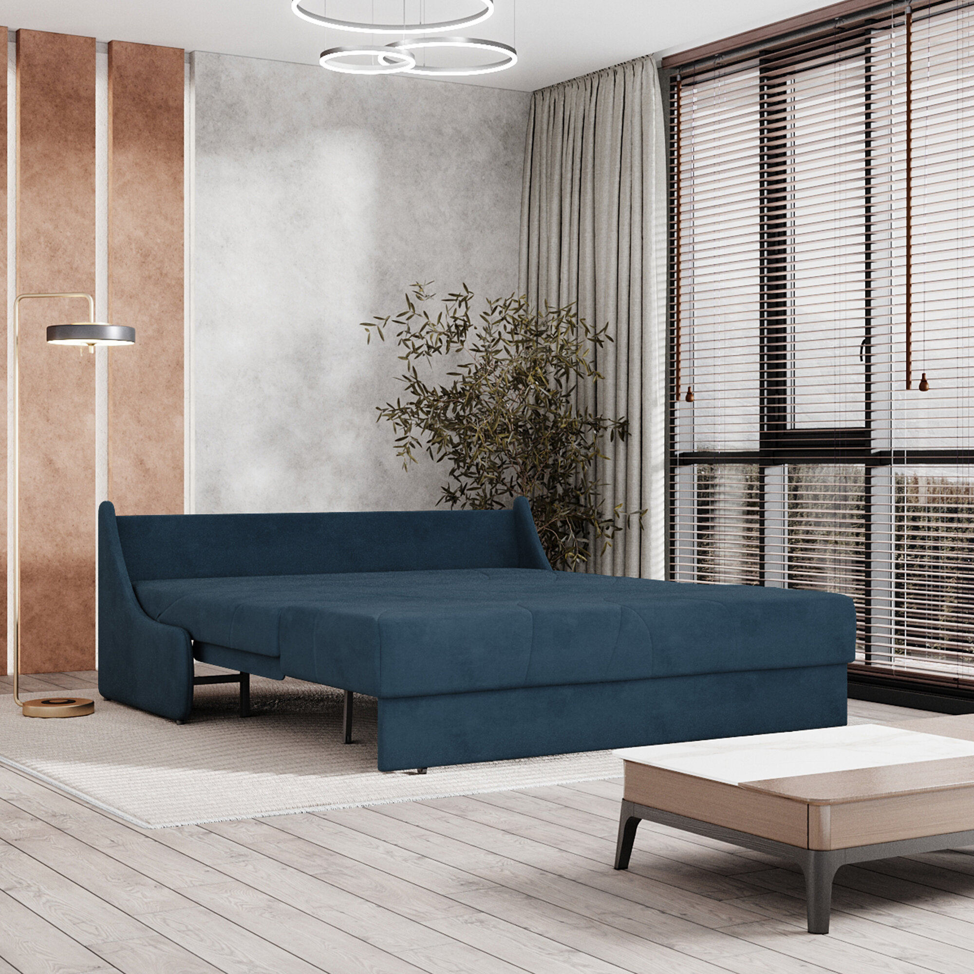 Диван-кровать раскладной Прямой, Аккордеон, Беспружинный, 160х200 спальное место, Клайд, велюр синий