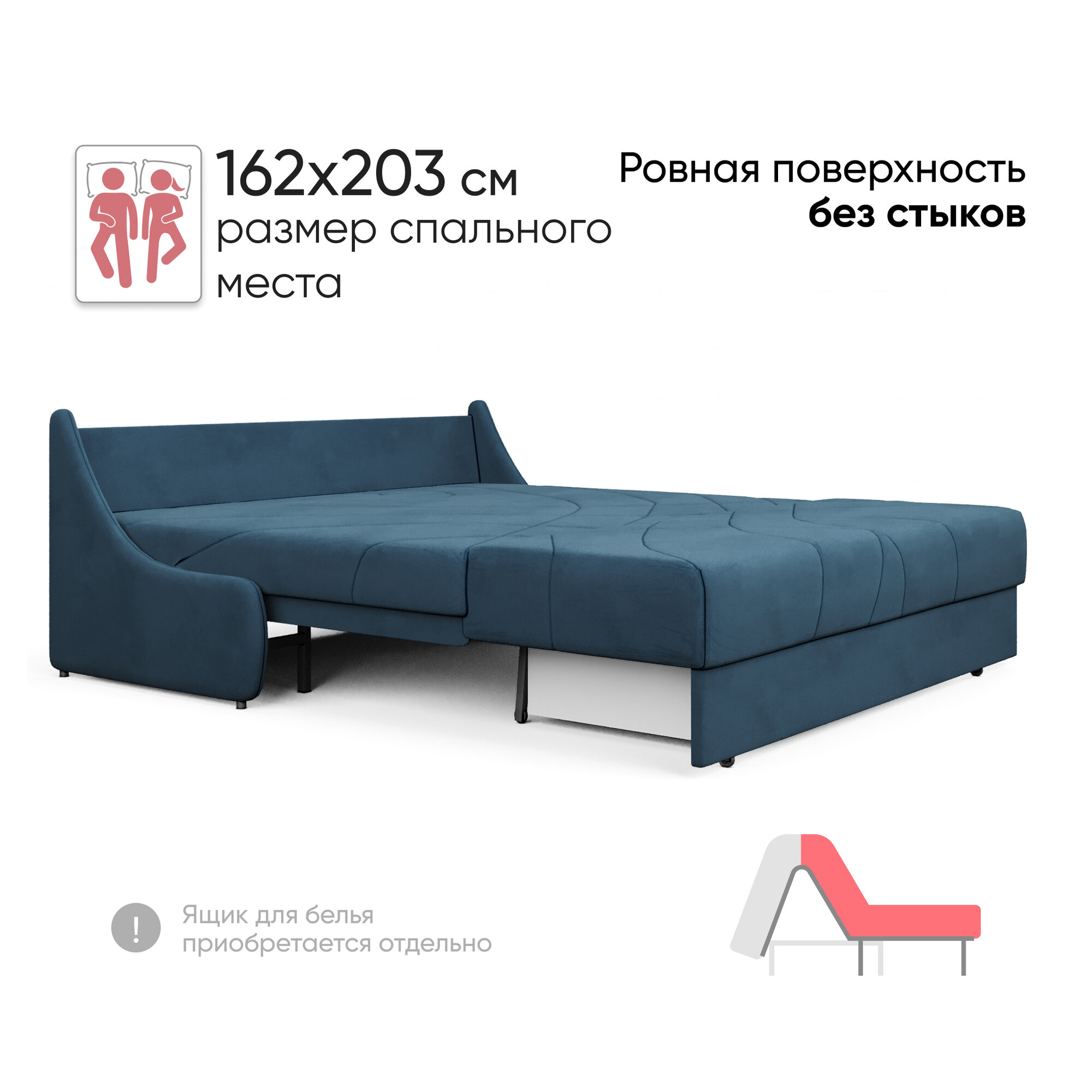 Купить Диван-кровать раскладной Прямой с ящиком, Аккордеон, Беспружинный, 162х200 спальное место, Клайд, велюр синий