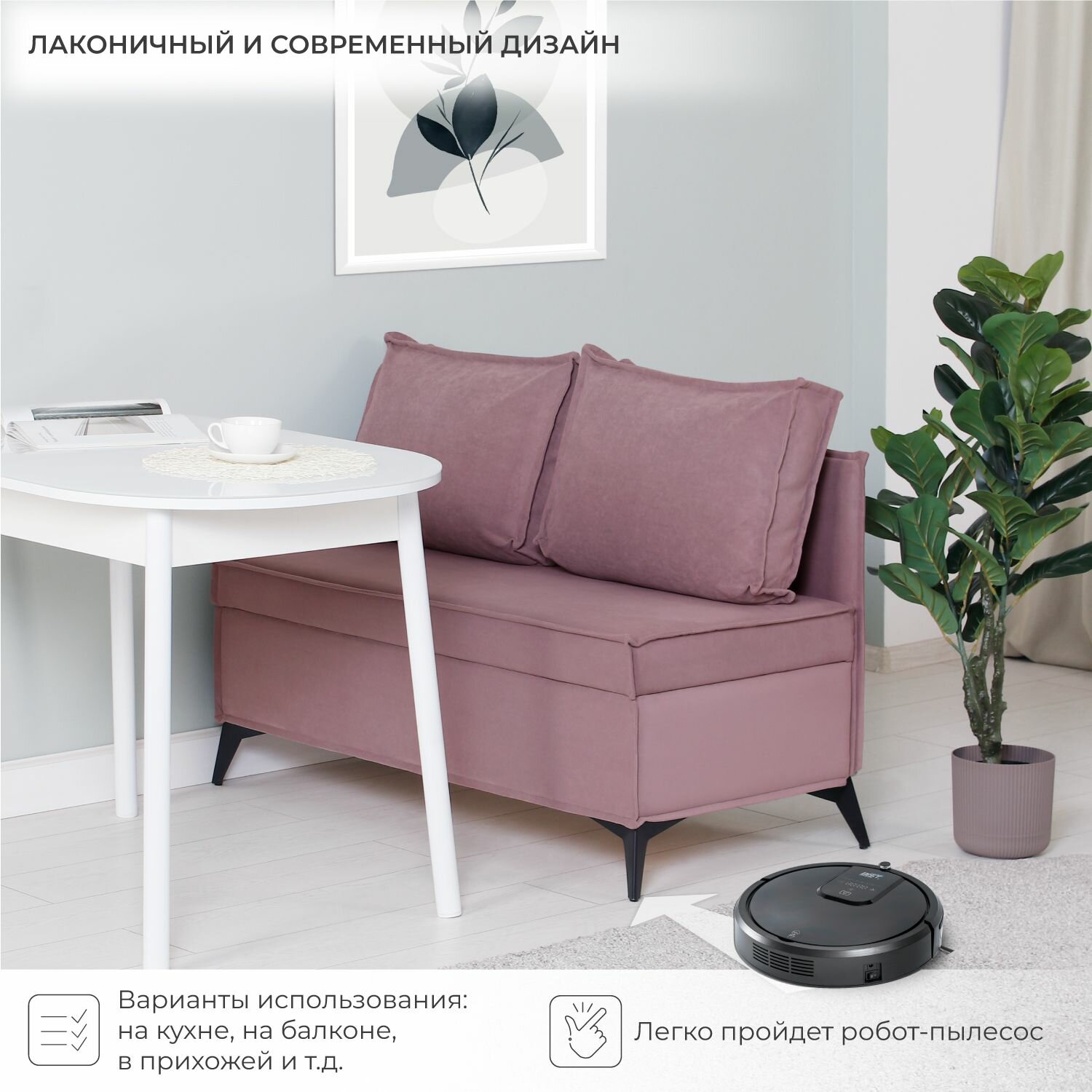 СохранитьДиван на кухню, прямой, на балкон, в прихожую NORTA Loft XS 1130х585х800 VIVALDI 28 велюр интересное: