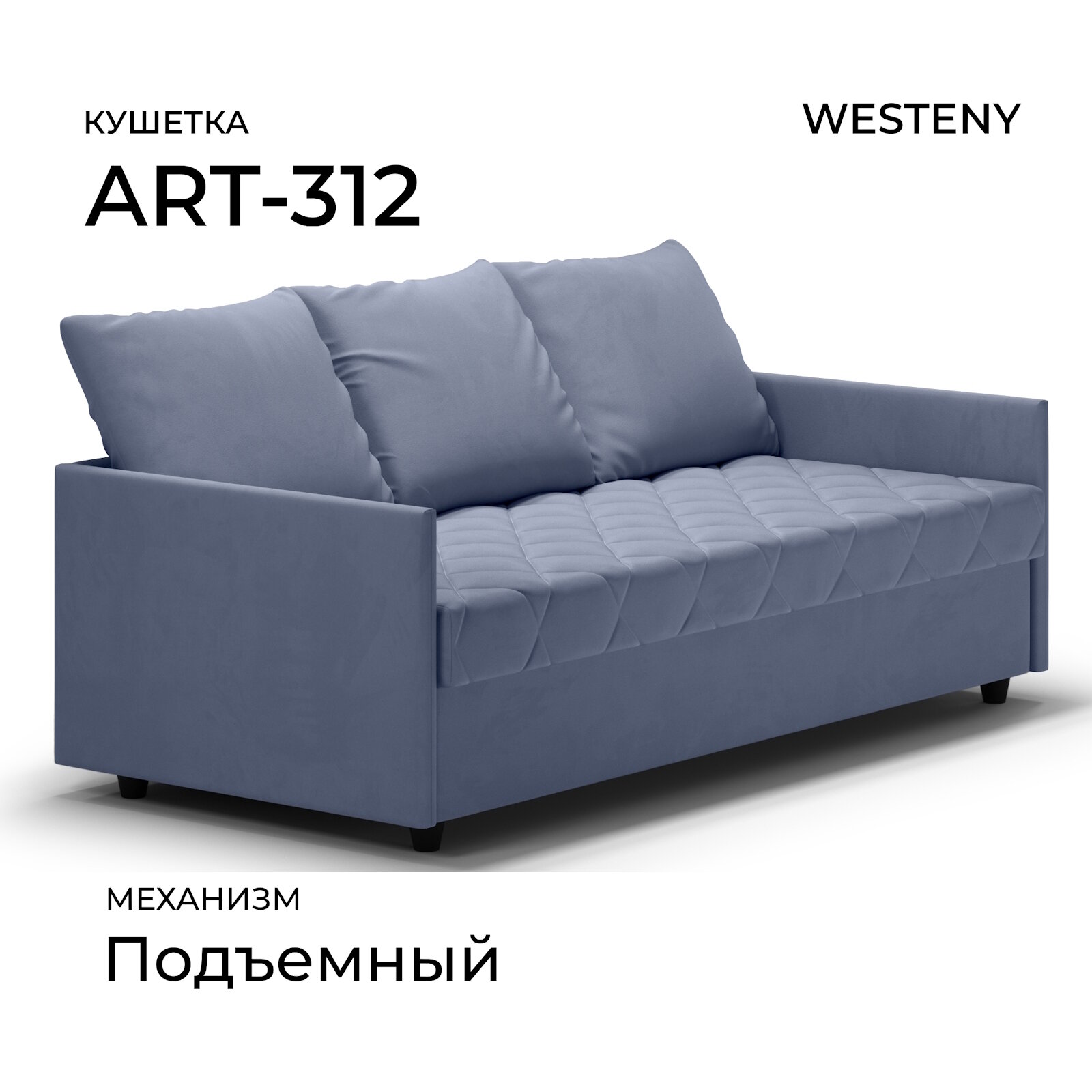 Кушетка WESTENY "ART-312 " 200x94x62, 90x190, 1 место, синий велюр