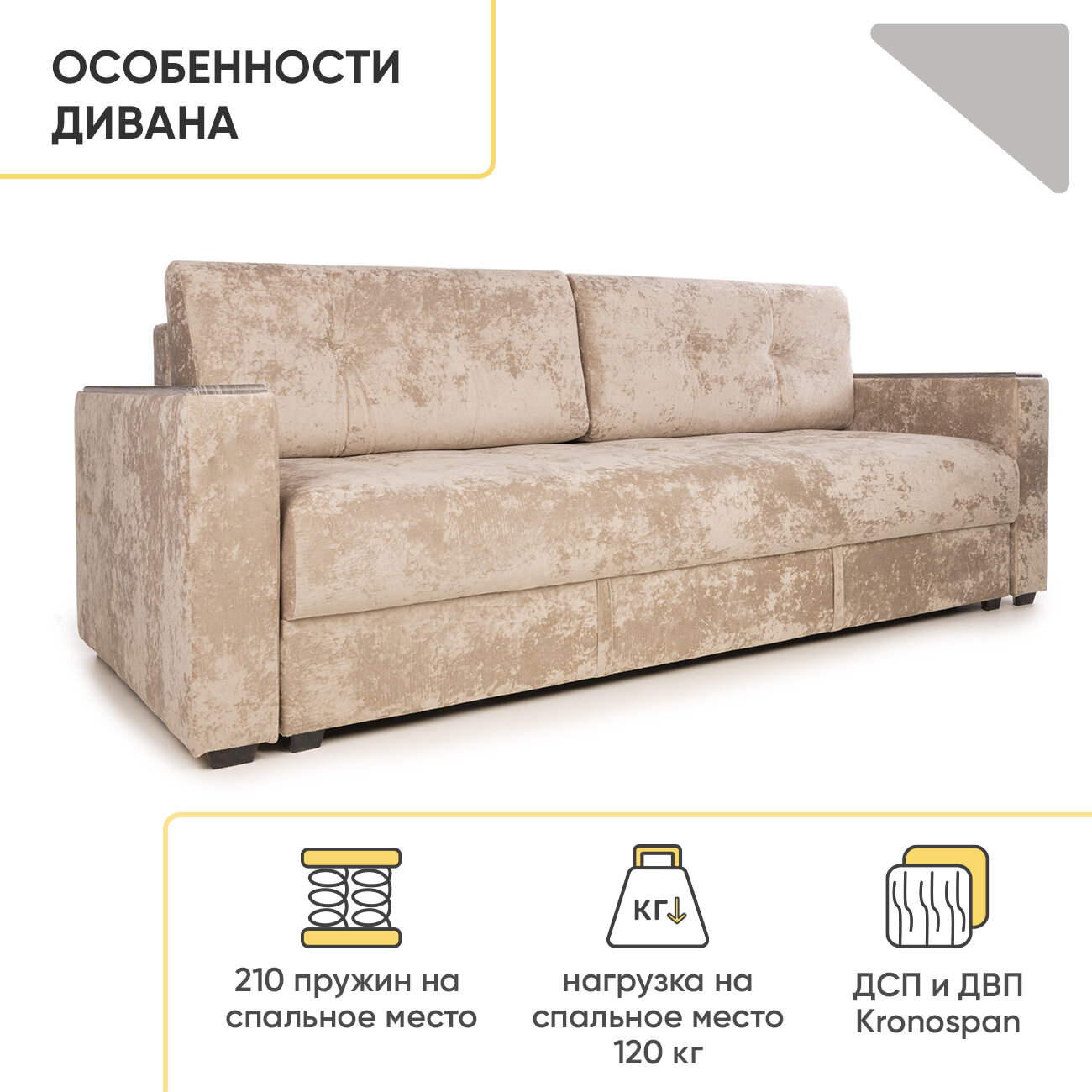 Диван кровать раскладной с подлокотниками, 2 подушками и ящиком, 218х97х87 см, Бежевый Ocean 130 интересное: