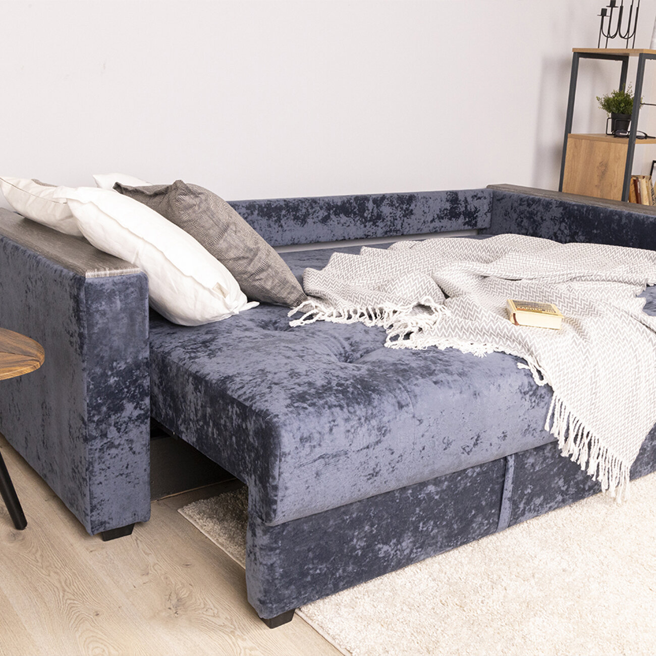Купить Диван кровать раскладной с подлокотниками, 2 подушками и ящиком, 218х97х87 см, Темно-синий ocean 978