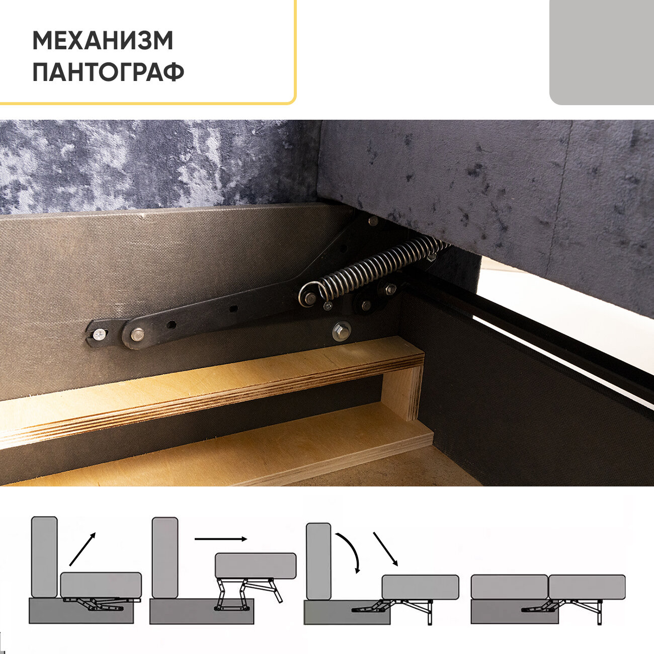 | Особенности | раскладная конструкция, с подлокотниками, ящик для белья |